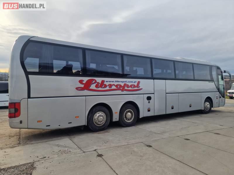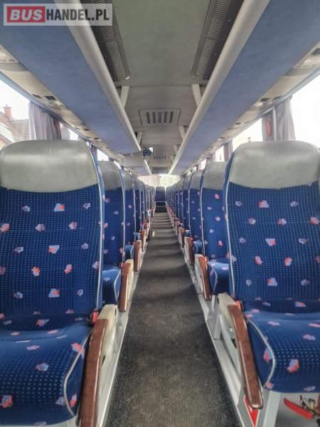 : klimatyzacja, video, WC, lodówka, caffebar, kabina sypialna, oświetlenie indywidualne, nawiewy dyszowe, podnóżki, stoliczki, siateczki, ABS, ASR, tempomat, retarder, telefon, nawigacja, CD, mikrofon, radio, fotele odchylane i rozsuwane, kuchenka mikrofalowa, regulacja wysokości nadwozia, centralny zamek, podwójne szyby boczne, wspomaganie kierownicy, elektryczne lusterka, ogrzewanie stacjonarne, DVD, ESP