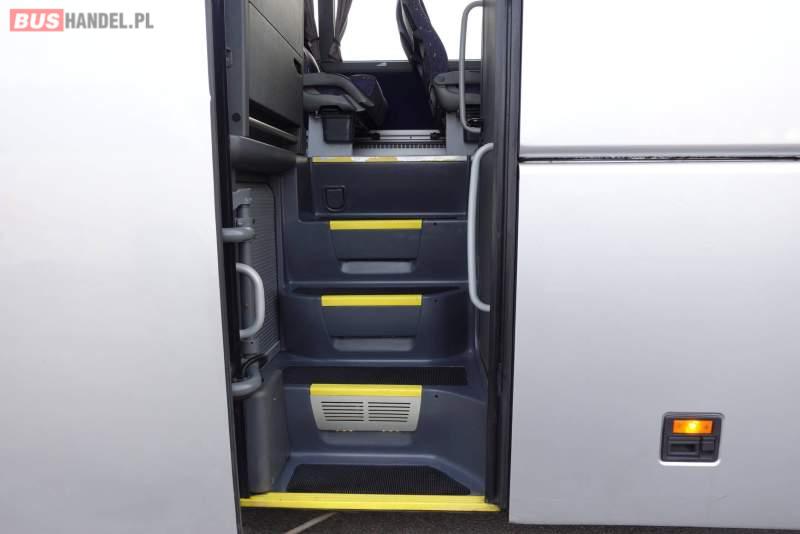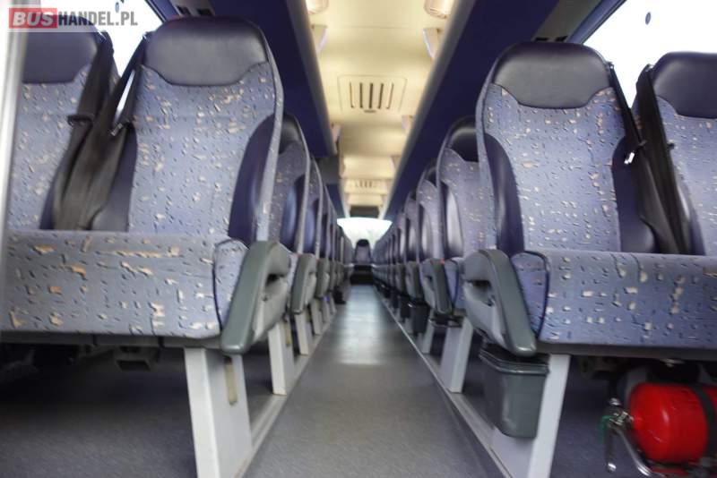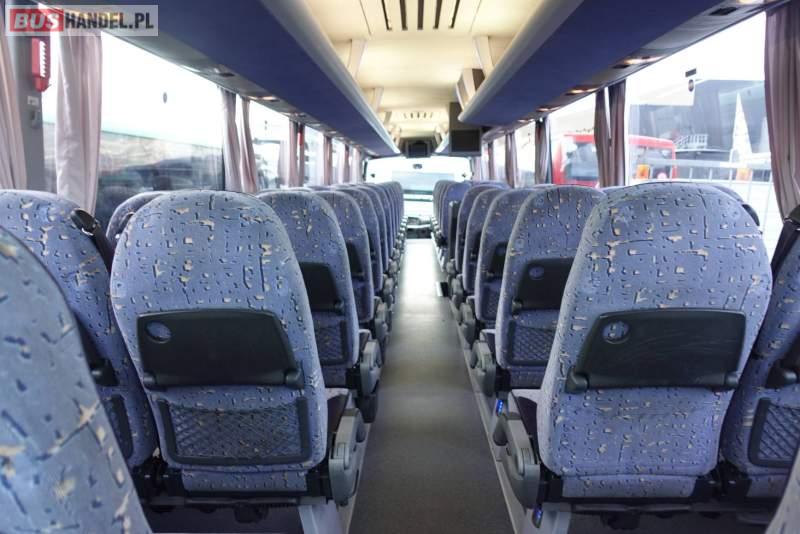 : video, WC, lodówka, caffebar, kabina sypialna, fotele odchylane, oświetlenie indywidualne, nawiewy dyszowe, siateczki, ABS, ASR, tempomat, retarder, nawigacja, CD, podnóżki, stoliczki, mikrofon, klimatyzacja, regulacja wysokości nadwozia, centralny zamek, podwójne szyby boczne, wspomaganie kierownicy, elektryczne lusterka, fotele odchylane i rozsuwane, DVD, ogrzewanie stacjonarne, ESP