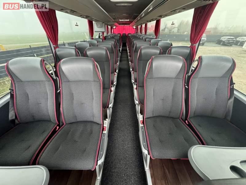 : WC, lodówka, oświetlenie indywidualne, nawiewy dyszowe, siateczki, ABS, ASR, tempomat, retarder, CD, podnóżki, stoliczki, mikrofon, klimatyzacja, radio, regulacja wysokości nadwozia, centralny zamek, podwójne szyby boczne, wspomaganie kierownicy, elektryczne lusterka, aluminiowe felgi, fotele odchylane i rozsuwane, DVD, ogrzewanie stacjonarne, ESP