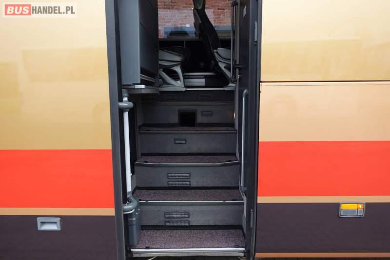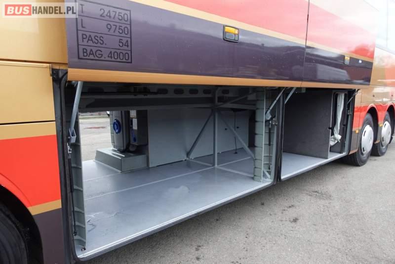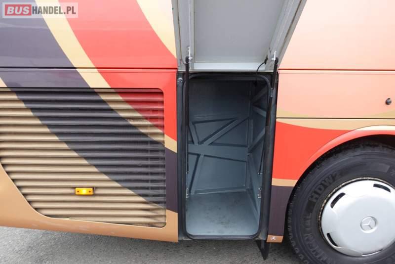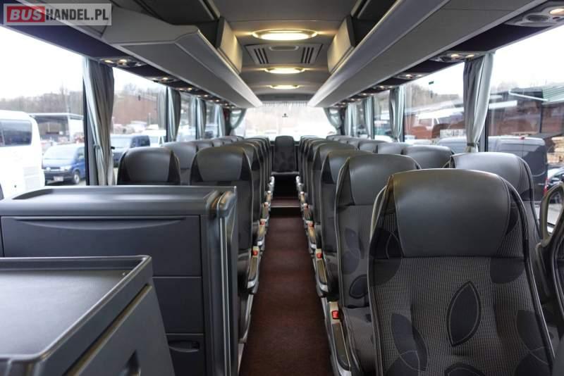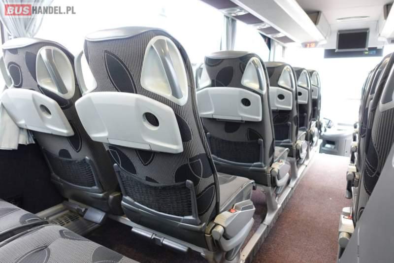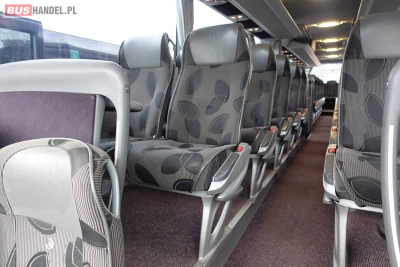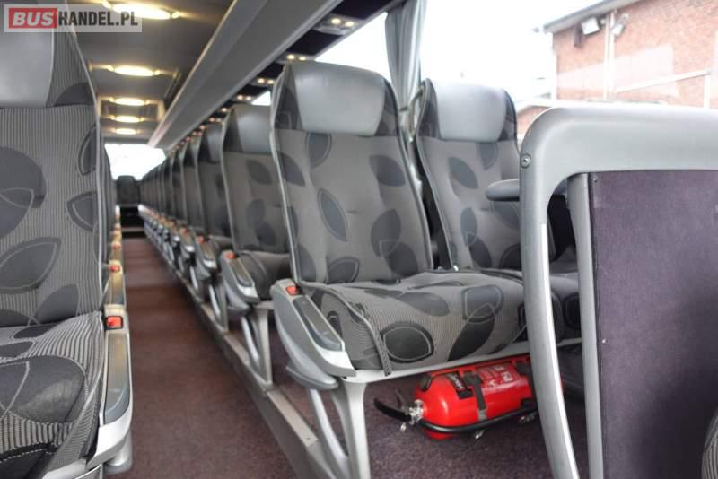 : klimatyzacja, video, WC, lodówka, caffebar, kabina sypialna, oświetlenie indywidualne, nawiewy dyszowe, fotele odchylane, podnóżki, stoliczki, siateczki, ABS, ASR, tempomat, retarder, CD, mikrofon, radio, fotele odchylane i rozsuwane, wyświetlacz matrix, regulacja wysokości nadwozia, centralny zamek, podwójne szyby boczne, wspomaganie kierownicy, elektryczne lusterka, ogrzewanie stacjonarne, DVD, hak holowniczy, ESP