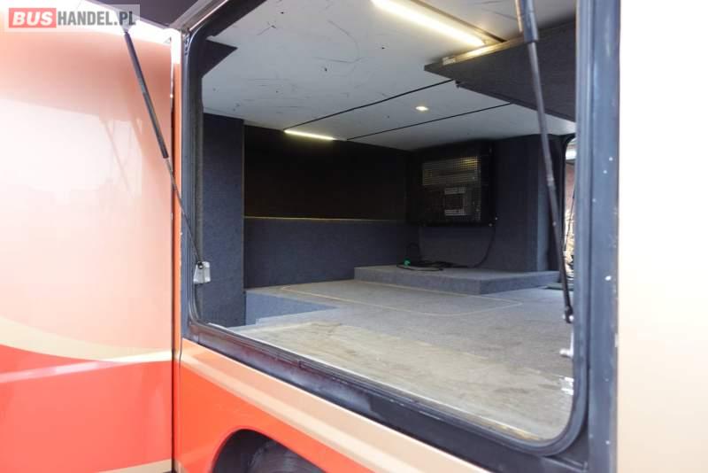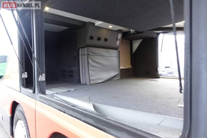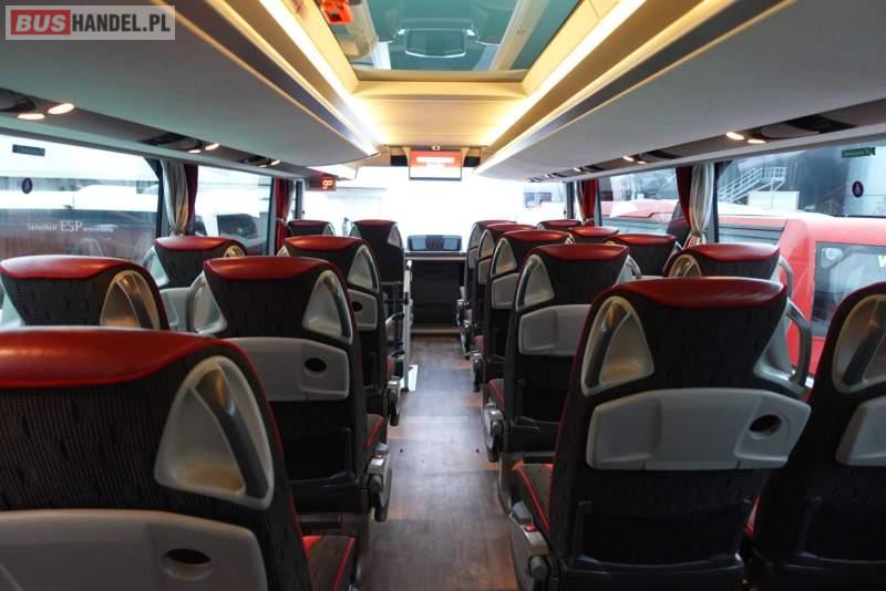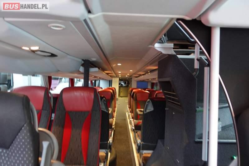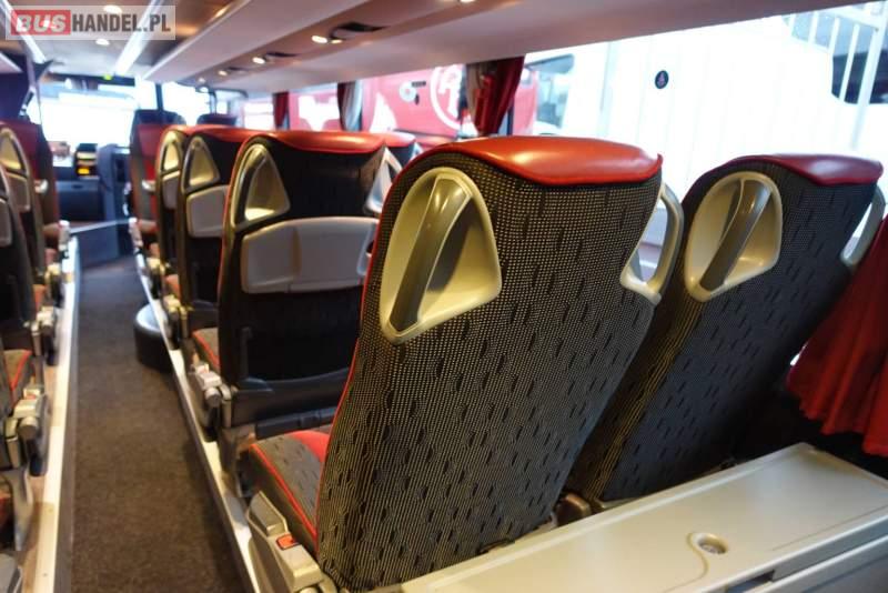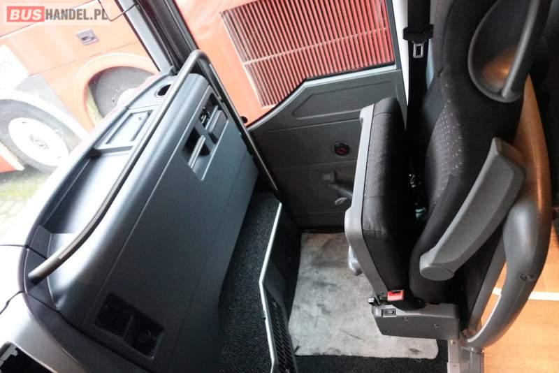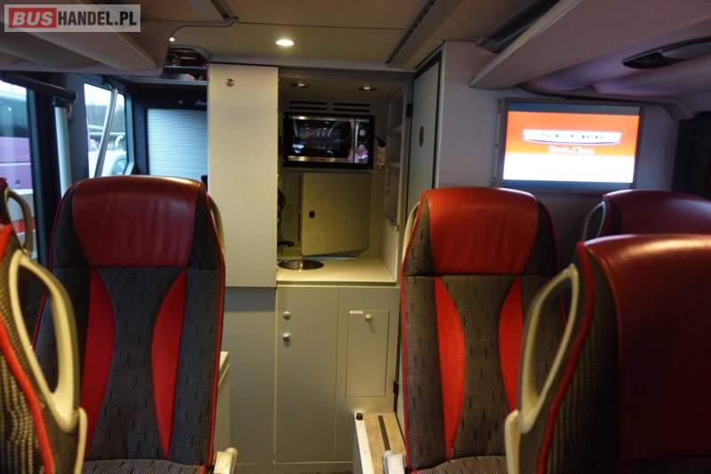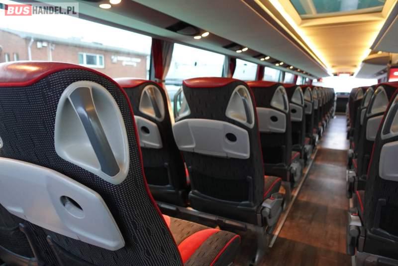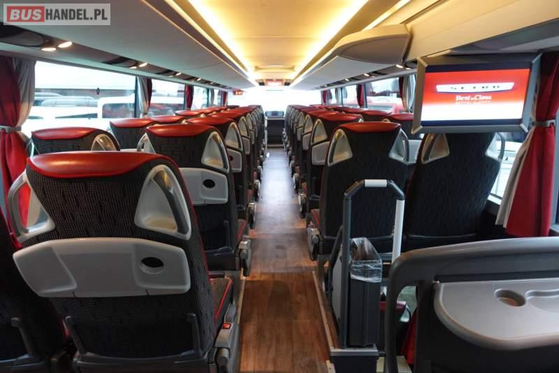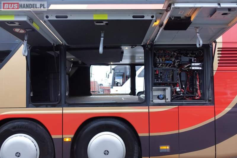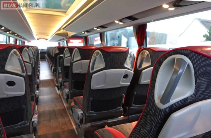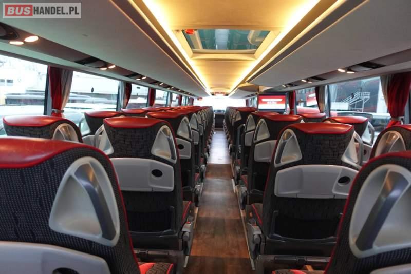 : video, WC, lodówka, caffebar, kabina sypialna, fotele odchylane, oświetlenie indywidualne, nawiewy dyszowe, siateczki, ABS, ASR, tempomat, retarder, nawigacja, CD, podnóżki, stoliczki, mikrofon, klimatyzacja, radio, kuchenka mikrofalowa, wyświetlacz matrix, regulacja wysokości nadwozia, centralny zamek, podwójne szyby boczne, wspomaganie kierownicy, elektryczne lusterka, fotele odchylane i rozsuwane, DVD, ogrzewanie stacjonarne, hak holowniczy, ESP