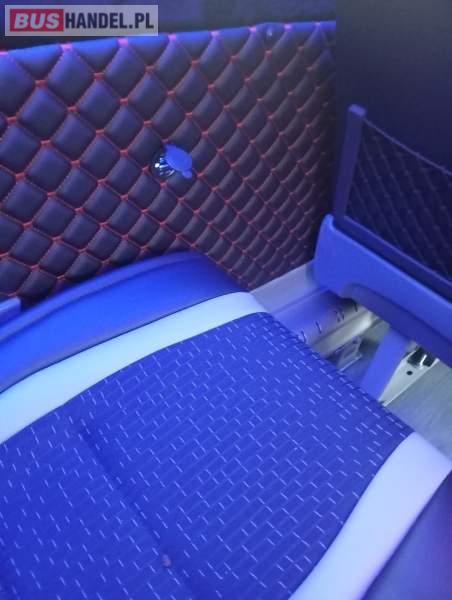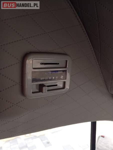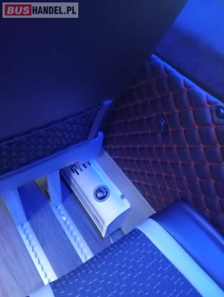 : video, fotele odchylane, oświetlenie indywidualne, nawiewy dyszowe, siateczki, ABS, ASR, tempomat, telefon, nawigacja, CD, stoliczki, mikrofon, klimatyzacja, radio, wyświetlacz matrix, rampa dla inwalidów, sejf, centralny zamek, podwójne szyby boczne, wspomaganie kierownicy, elektryczne lusterka, fotele odchylane i rozsuwane, DVD, ogrzewanie stacjonarne, hak holowniczy, ESP