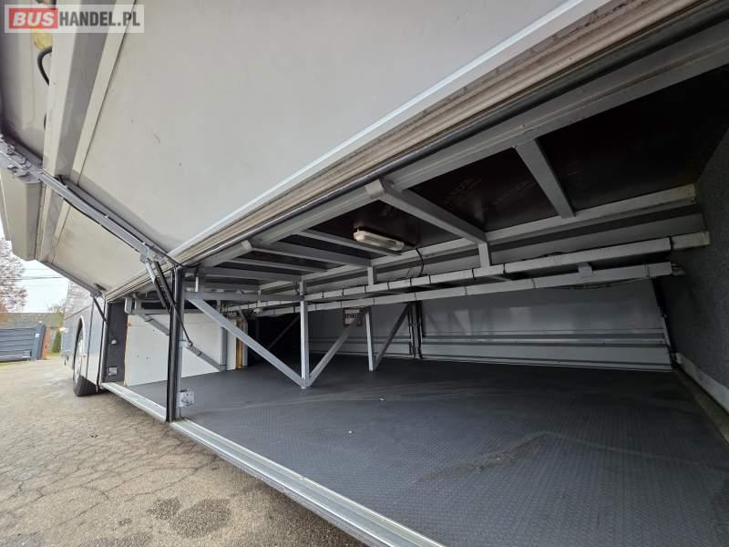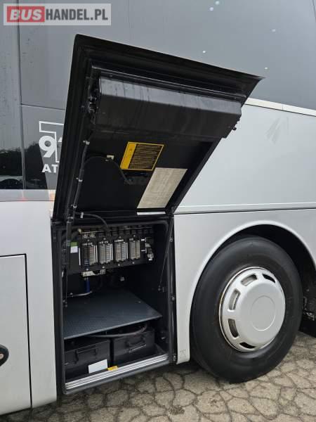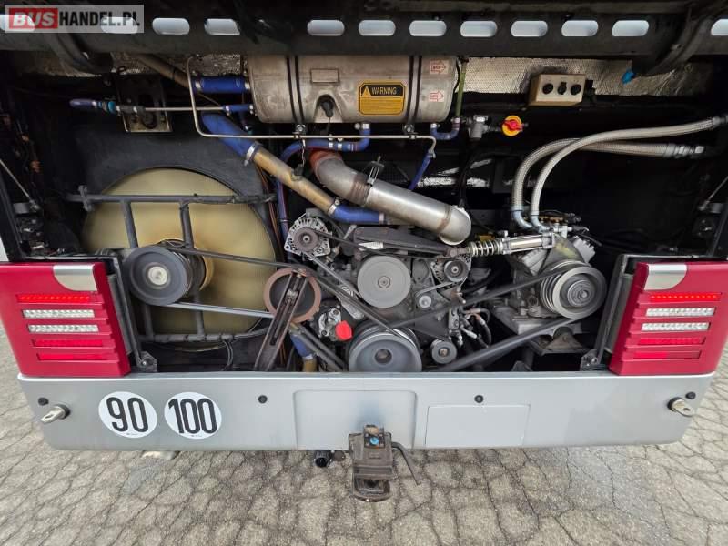 : lodówka, caffebar, fotele odchylane, oświetlenie indywidualne, nawiewy dyszowe, siateczki, ABS, ASR, tempomat, retarder, podnóżki, stoliczki, mikrofon, klimatyzacja, radio, sejf, centralny zamek, podwójne szyby boczne, wspomaganie kierownicy, elektryczne lusterka, ogrzewanie stacjonarne