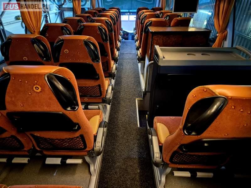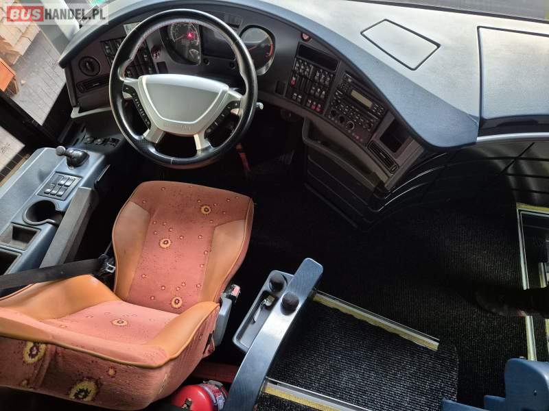 : klimatyzacja, WC, lodówka, caffebar, kabina sypialna, oświetlenie indywidualne, nawiewy dyszowe, fotele odchylane, podnóżki, ABS, ASR, retarder, CD, mikrofon, radio, fotele odchylane i rozsuwane, regulacja wysokości nadwozia, centralny zamek, podwójne szyby boczne, elektryczne lusterka, ogrzewanie stacjonarne, DVD, hak holowniczy, ESP