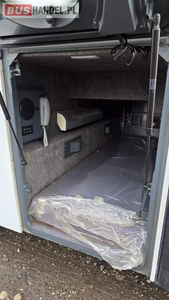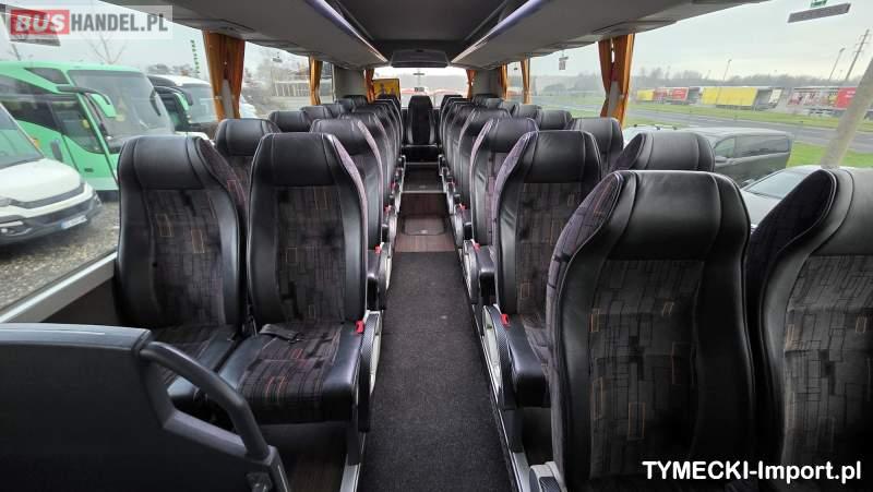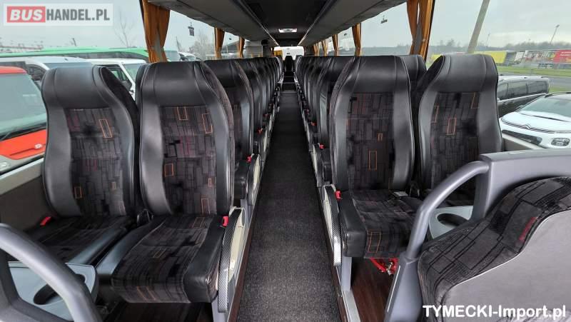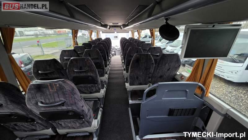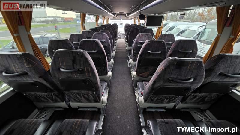 : video, lodówka, kabina sypialna, fotele odchylane, oświetlenie indywidualne, nawiewy dyszowe, siateczki, ABS, ASR, tempomat, retarder, CD, podnóżki, stoliczki, mikrofon, klimatyzacja, radio, regulacja wysokości nadwozia, centralny zamek, podwójne szyby boczne, wspomaganie kierownicy, elektryczne lusterka, DVD, ogrzewanie stacjonarne, ESP