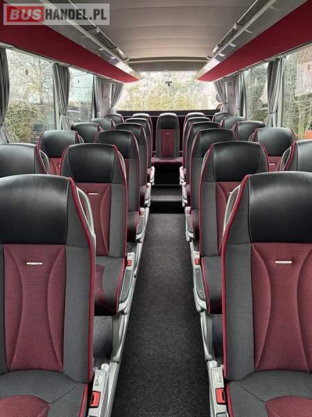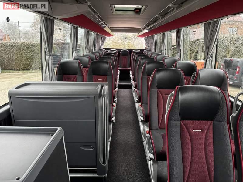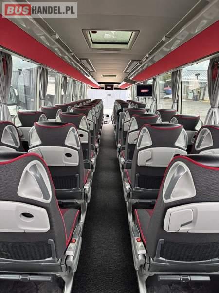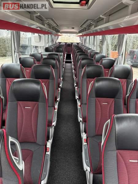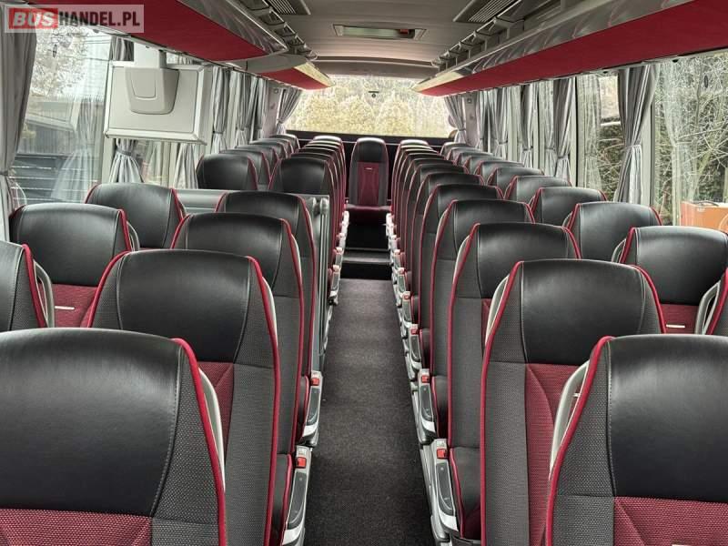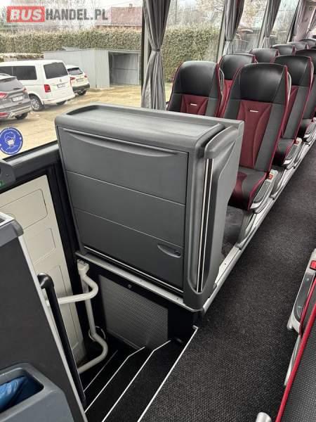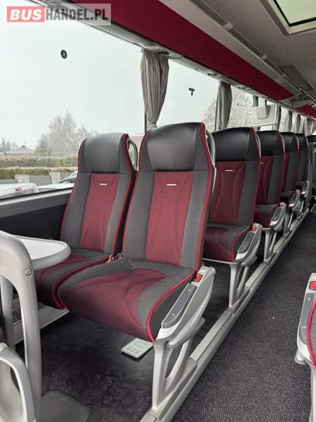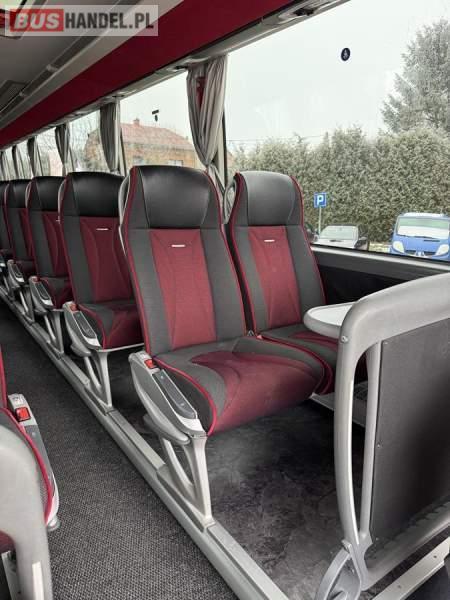 : WC, lodówka, caffebar, kabina sypialna, fotele odchylane, oświetlenie indywidualne, nawiewy dyszowe, siateczki, ABS, ASR, tempomat, retarder, podnóżki, stoliczki, mikrofon, klimatyzacja, radio, sejf, regulacja wysokości nadwozia, centralny zamek, podwójne szyby boczne, wspomaganie kierownicy, elektryczne lusterka, fotele odchylane i rozsuwane, DVD, ogrzewanie stacjonarne, ESP
