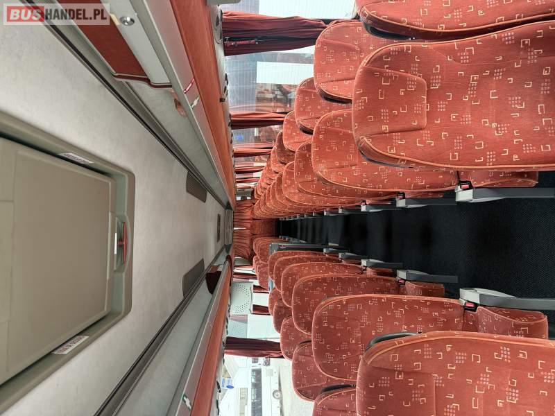: video, WC, lodówka, kabina sypialna, oświetlenie indywidualne, nawiewy dyszowe, siateczki, ABS, ASR, tempomat, retarder, CD, podnóżki, stoliczki, mikrofon, klimatyzacja, radio, sejf, regulacja wysokości nadwozia, podwójne szyby boczne, wspomaganie kierownicy, fotele odchylane i rozsuwane, DVD, ogrzewanie stacjonarne, hak holowniczy, ESP