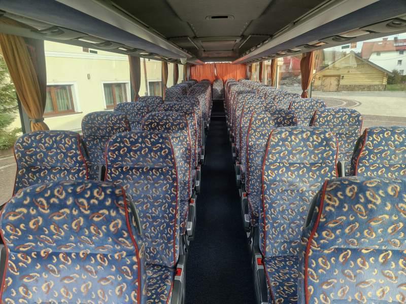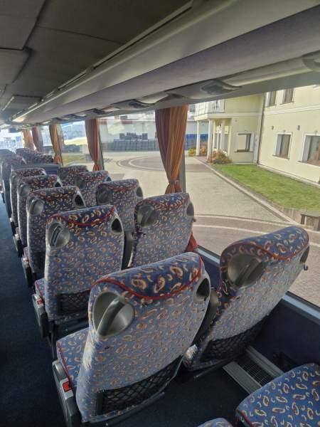 : video, WC, lodówka, kabina sypialna, fotele odchylane, oświetlenie indywidualne, nawiewy dyszowe, siateczki, ABS, ASR, tempomat, retarder, CD, podnóżki, mikrofon, klimatyzacja, radio, regulacja wysokości nadwozia, podwójne szyby boczne, wspomaganie kierownicy, elektryczne lusterka, aluminiowe felgi, fotele odchylane i rozsuwane, DVD, ogrzewanie stacjonarne, ESP