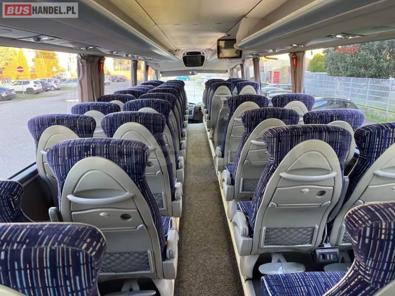 : WC, lodówka, fotele odchylane, ABS, ASR, retarder, CD, podnóżki, stoliczki, mikrofon, klimatyzacja, radio, DVD, ogrzewanie stacjonarne