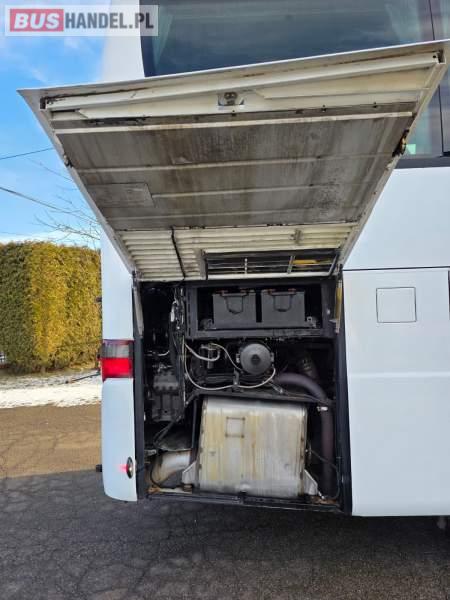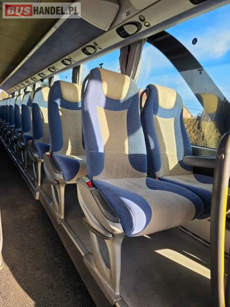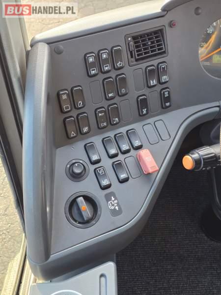 : klimatyzacja, WC, lodówka, oświetlenie indywidualne, nawiewy dyszowe, podnóżki, stoliczki, siateczki, ABS, ASR, tempomat, retarder, mikrofon, radio, fotele odchylane i rozsuwane, sejf, regulacja wysokości nadwozia, centralny zamek, podwójne szyby boczne, wspomaganie kierownicy, elektryczne lusterka, ogrzewanie stacjonarne, DVD, ESP