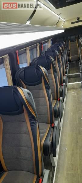 : video, fotele odchylane, oświetlenie indywidualne, nawiewy dyszowe, siateczki, ABS, ASR, tempomat, nawigacja, CD, podnóżki, stoliczki, mikrofon, klimatyzacja, radio, wyświetlacz matrix, centralny zamek, podwójne szyby boczne, wspomaganie kierownicy, elektryczne lusterka, fotele odchylane i rozsuwane, DVD, ogrzewanie stacjonarne, hak holowniczy, ESP