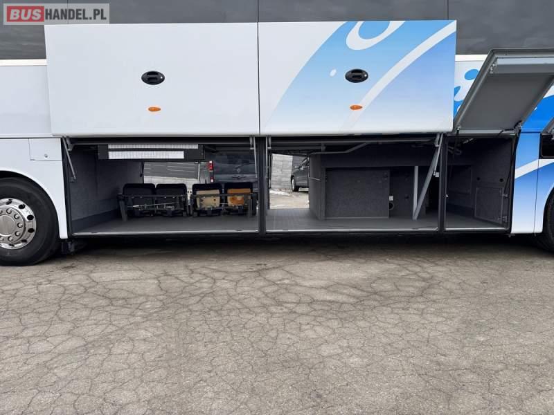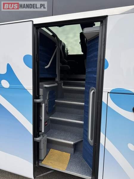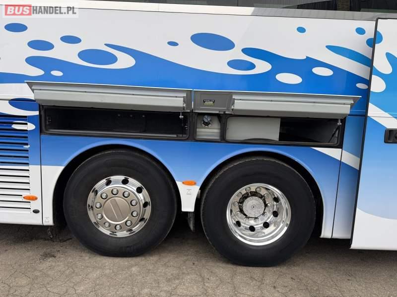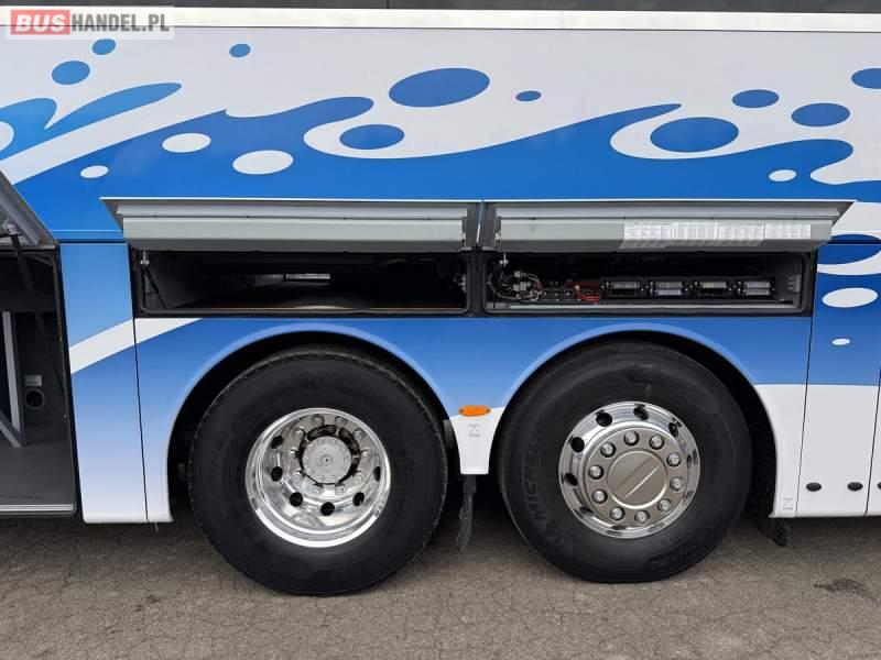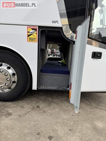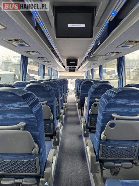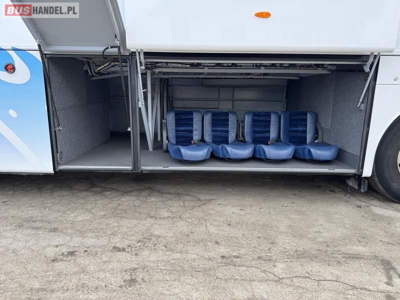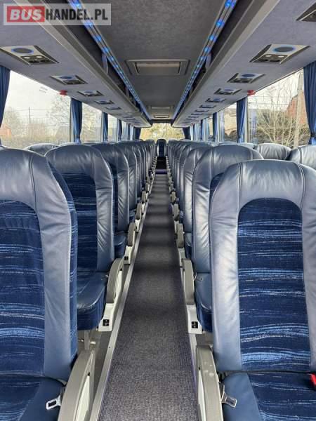 : WC, lodówka, caffebar, kabina sypialna, oświetlenie indywidualne, nawiewy dyszowe, siateczki, ABS, ASR, tempomat, retarder, podnóżki, stoliczki, mikrofon, klimatyzacja, radio, sejf, regulacja wysokości nadwozia, centralny zamek, podwójne szyby boczne, wspomaganie kierownicy, elektryczne lusterka, aluminiowe felgi, fotele odchylane i rozsuwane, DVD, ogrzewanie stacjonarne, ESP