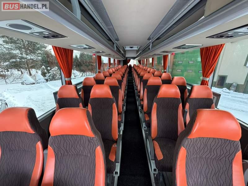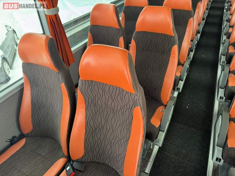 : video, WC, lodówka, kabina sypialna, fotele odchylane, oświetlenie indywidualne, nawiewy dyszowe, siateczki, ABS, ASR, tempomat, retarder, CD, podnóżki, stoliczki, mikrofon, klimatyzacja, radio, regulacja wysokości nadwozia, centralny zamek, podwójne szyby boczne, wspomaganie kierownicy, elektryczne lusterka, DVD, ogrzewanie stacjonarne, ESP