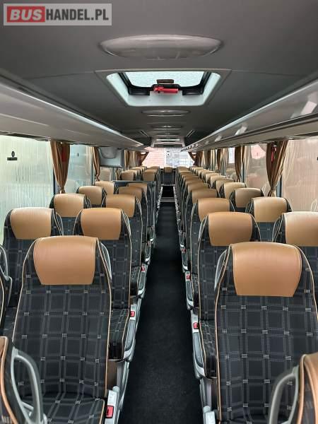 : video, WC, lodówka, caffebar, kabina sypialna, fotele odchylane, oświetlenie indywidualne, nawiewy dyszowe, siateczki, ABS, ASR, tempomat, retarder, CD, podnóżki, stoliczki, fotele nieodchylane, mikrofon, klimatyzacja, radio, sejf, regulacja wysokości nadwozia, centralny zamek, podwójne szyby boczne, wspomaganie kierownicy, elektryczne lusterka, aluminiowe felgi, fotele odchylane i rozsuwane, DVD, ogrzewanie stacjonarne, hak holowniczy, ESP