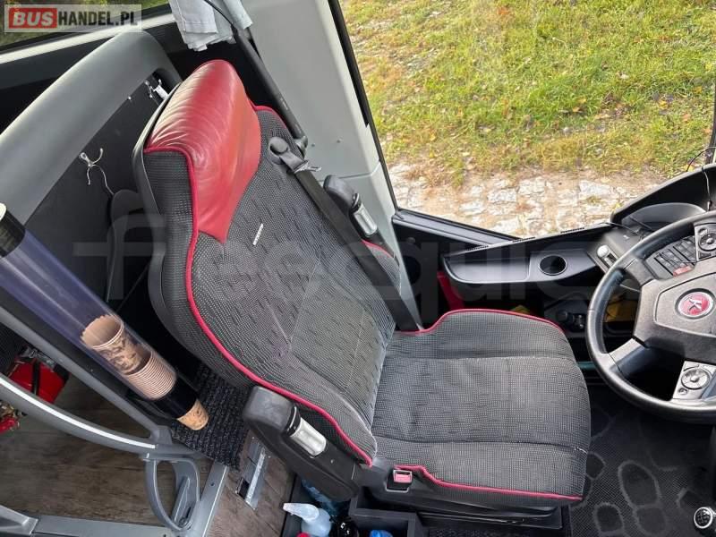 : WC, lodówka, fotele odchylane, ABS, ASR, retarder, CD, podnóżki, stoliczki, mikrofon, klimatyzacja, radio, fotele odchylane i rozsuwane, ogrzewanie stacjonarne