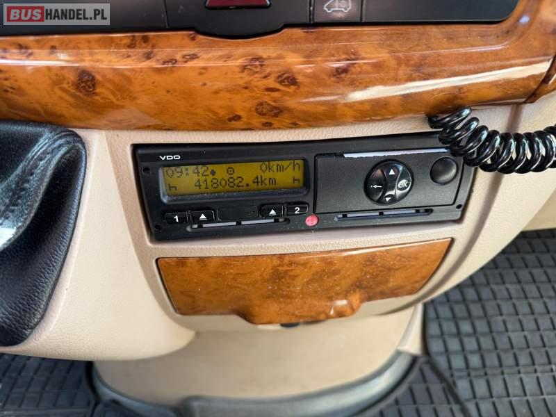 : lodówka, fotele odchylane, oświetlenie indywidualne, nawiewy dyszowe, siateczki, ABS, ASR, tempomat, nawigacja, CD, podnóżki, stoliczki, mikrofon, klimatyzacja, radio, wyświetlacz matrix, centralny zamek, podwójne szyby boczne, wspomaganie kierownicy, elektryczne lusterka, DVD, ogrzewanie stacjonarne, hak holowniczy, ESP
