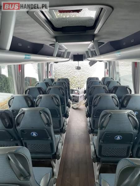 : video, WC, lodówka, kabina sypialna, fotele odchylane, oświetlenie indywidualne, nawiewy dyszowe, siateczki, ABS, ASR, tempomat, retarder, telefon, nawigacja, CD, podnóżki, stoliczki, mikrofon, klimatyzacja, radio, regulacja wysokości nadwozia, centralny zamek, podwójne szyby boczne, wspomaganie kierownicy, elektryczne lusterka, fotele odchylane i rozsuwane, DVD, ogrzewanie stacjonarne, ESP