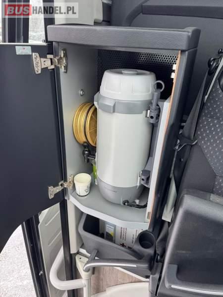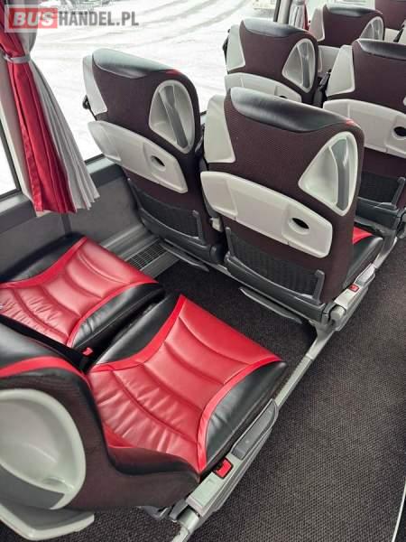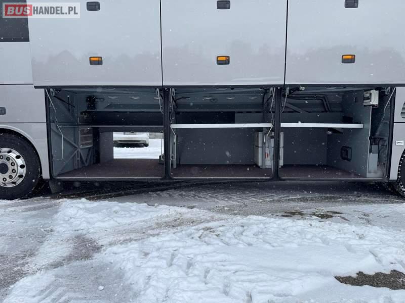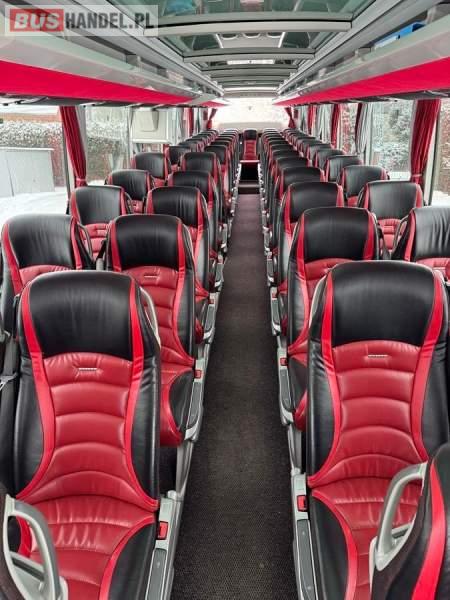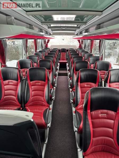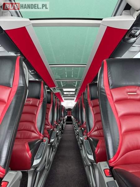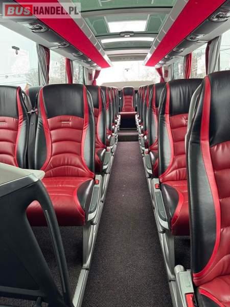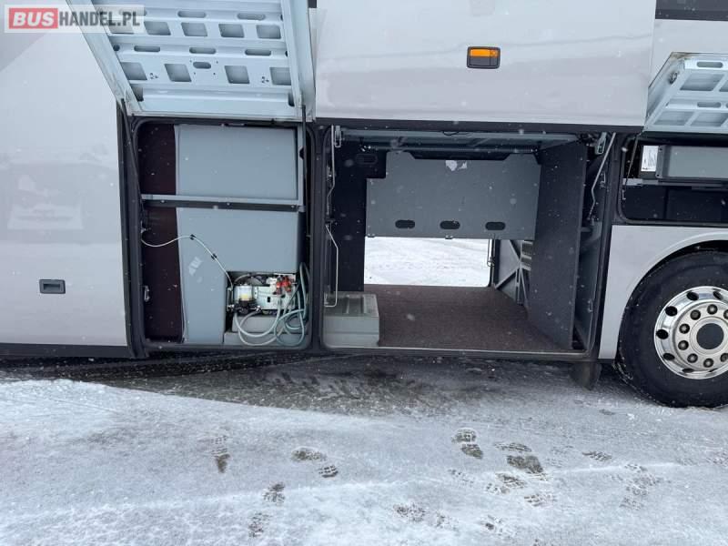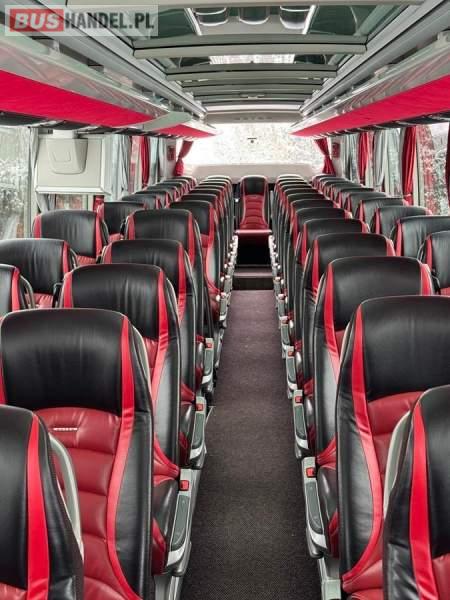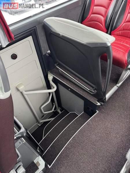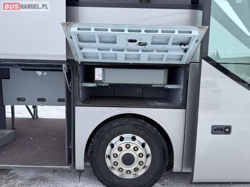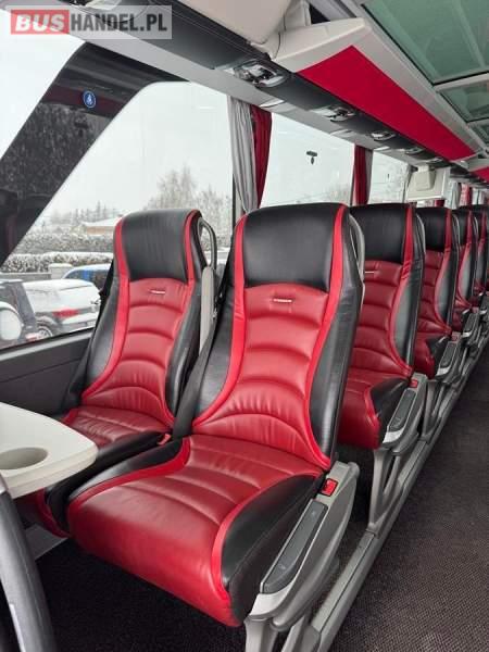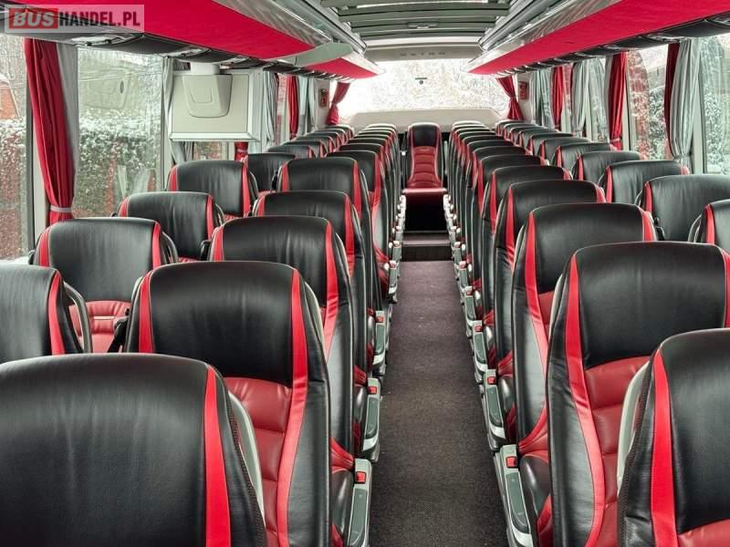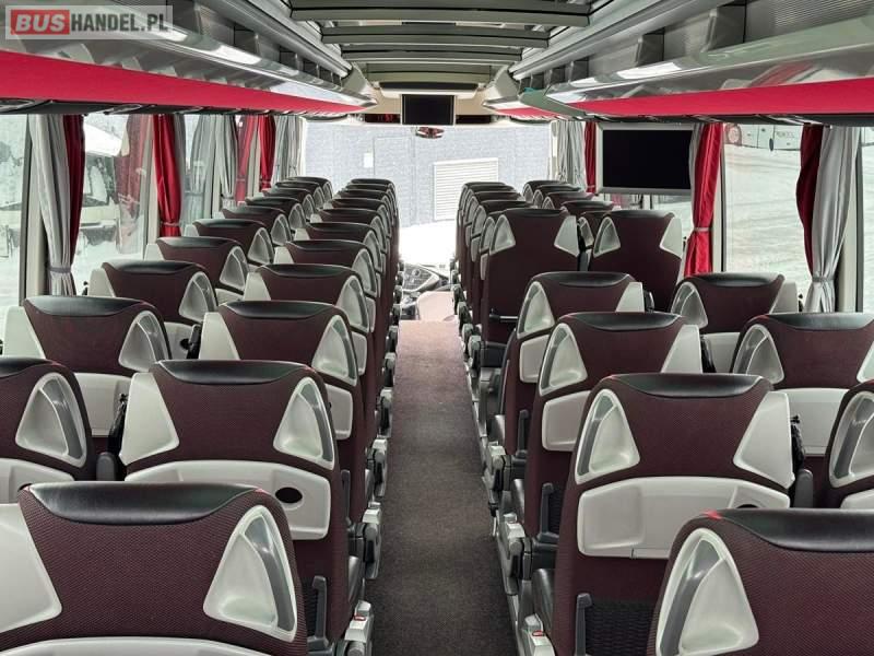 : WC, lodówka, kabina sypialna, oświetlenie indywidualne, nawiewy dyszowe, siateczki, ABS, ASR, tempomat, retarder, podnóżki, stoliczki, mikrofon, klimatyzacja, radio, sejf, regulacja wysokości nadwozia, centralny zamek, podwójne szyby boczne, wspomaganie kierownicy, elektryczne lusterka, aluminiowe felgi, fotele odchylane i rozsuwane, DVD, ogrzewanie stacjonarne, ESP