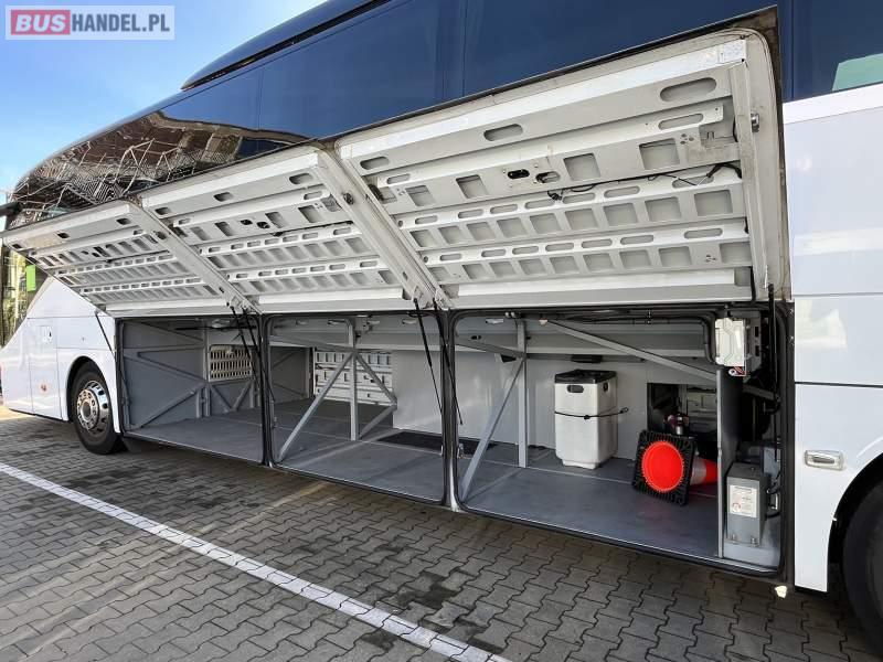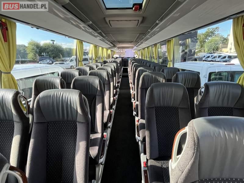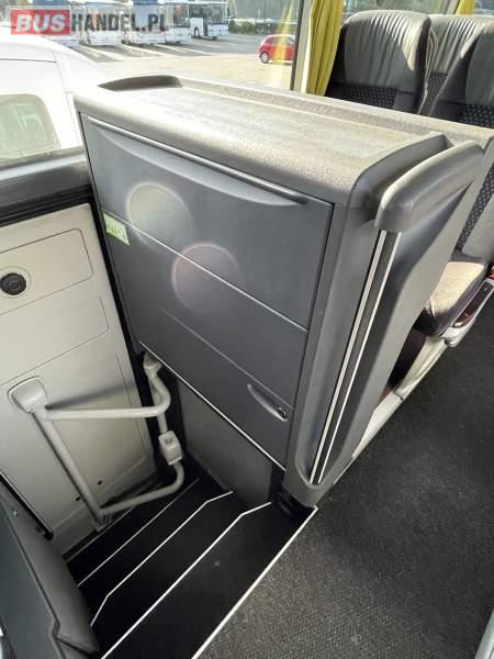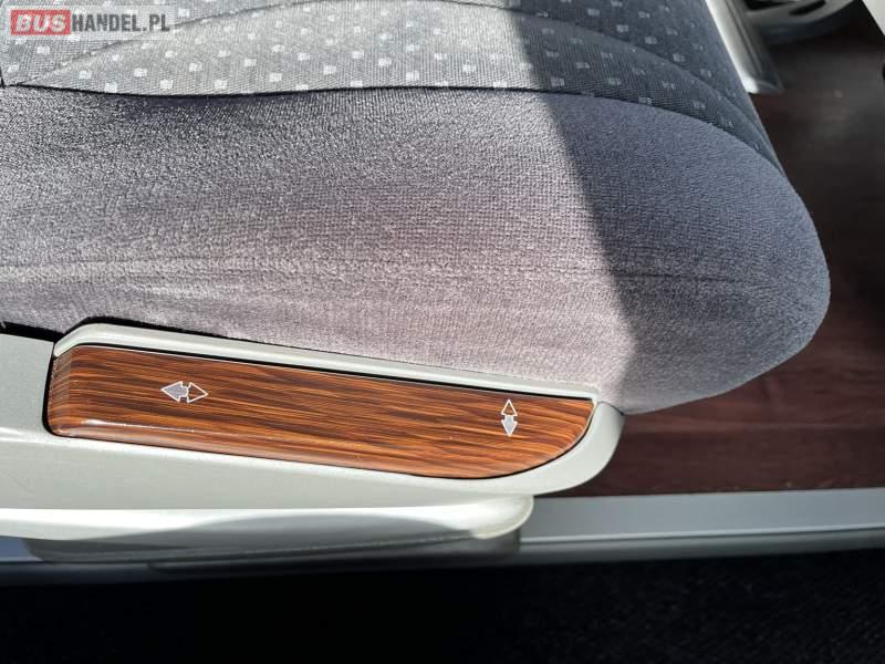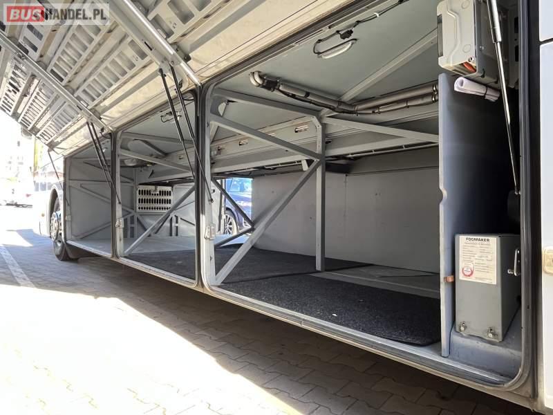 : klimatyzacja, WC, lodówka, caffebar, oświetlenie indywidualne, nawiewy dyszowe, fotele odchylane, podnóżki, siateczki, ABS, ASR, tempomat, retarder, nawigacja, CD, mikrofon, radio, fotele odchylane i rozsuwane, regulacja wysokości nadwozia, centralny zamek, podwójne szyby boczne, wspomaganie kierownicy, aluminiowe felgi, elektryczne lusterka, ogrzewanie stacjonarne, DVD, ESP