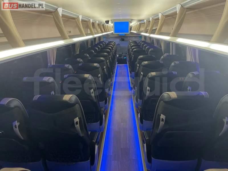: lodówka, fotele odchylane, ABS, ASR, retarder, CD, podnóżki, stoliczki, mikrofon, klimatyzacja, DVD, ogrzewanie stacjonarne
