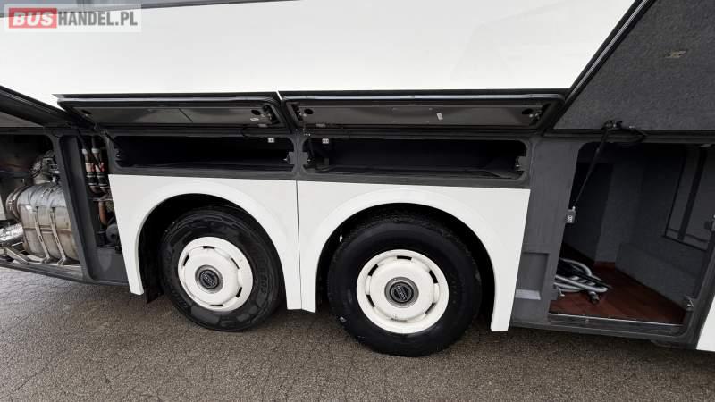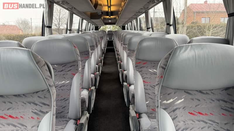 : WC, lodówka, caffebar, oświetlenie indywidualne, nawiewy dyszowe, siateczki, ABS, ASR, tempomat, retarder, podnóżki, stoliczki, mikrofon, klimatyzacja, radio, sejf, regulacja wysokości nadwozia, centralny zamek, podwójne szyby boczne, wspomaganie kierownicy, elektryczne lusterka, fotele odchylane i rozsuwane, DVD, ogrzewanie stacjonarne, ESP