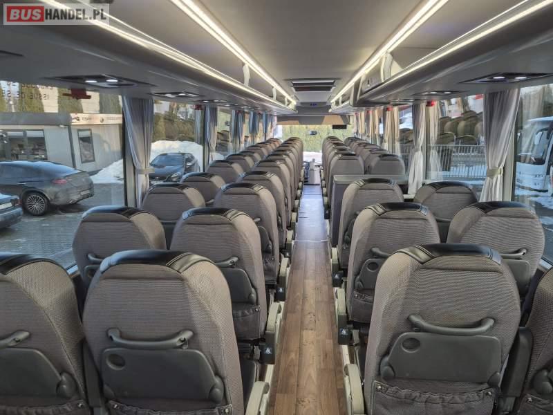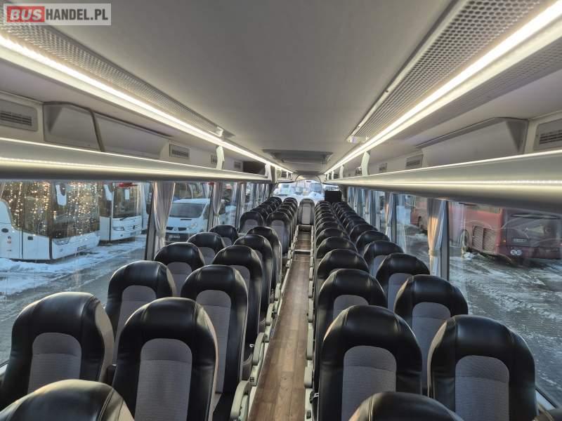 : video, WC, lodówka, kabina sypialna, fotele odchylane, oświetlenie indywidualne, siateczki, ABS, tempomat, retarder, CD, podnóżki, stoliczki, mikrofon, klimatyzacja, radio, regulacja wysokości nadwozia, centralny zamek, podwójne szyby boczne, wspomaganie kierownicy, elektryczne lusterka, DVD, ogrzewanie stacjonarne