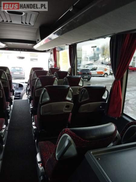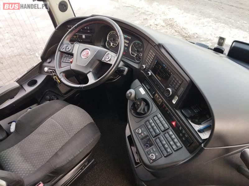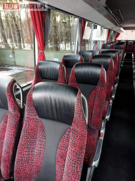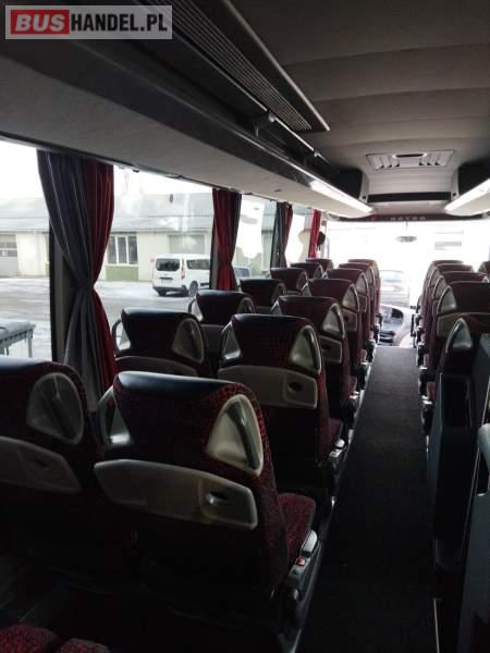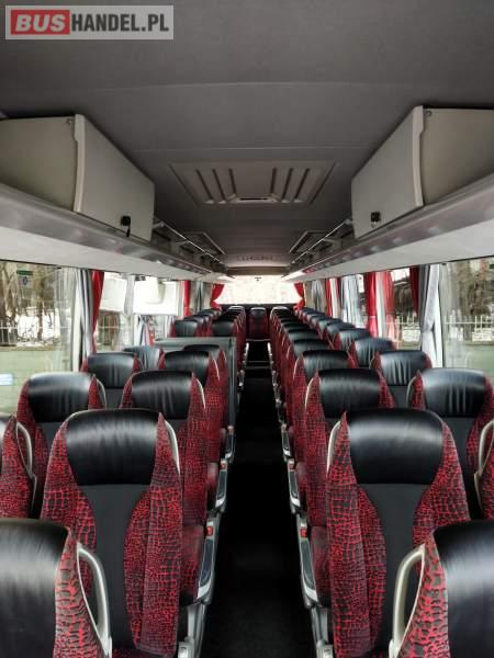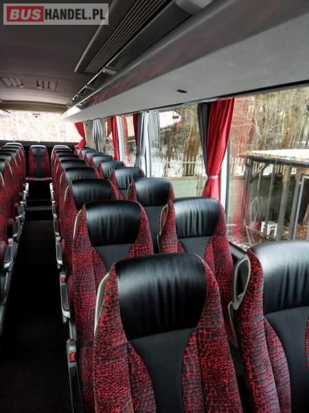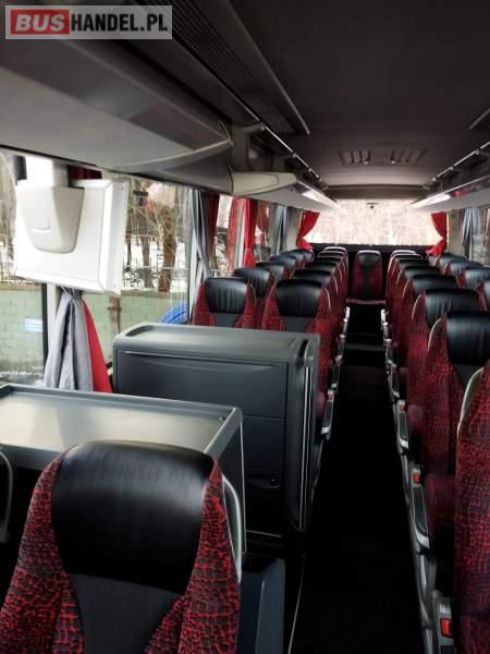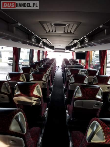 : klimatyzacja, WC, lodówka, caffebar, kabina sypialna, oświetlenie indywidualne, nawiewy dyszowe, fotele odchylane, podnóżki, stoliczki, siateczki, ABS, ASR, tempomat, retarder, nawigacja, CD, mikrofon, radio, fotele odchylane i rozsuwane, sejf, regulacja wysokości nadwozia, centralny zamek, podwójne szyby boczne, wspomaganie kierownicy, elektryczne lusterka, ogrzewanie stacjonarne, DVD, hak holowniczy, ESP