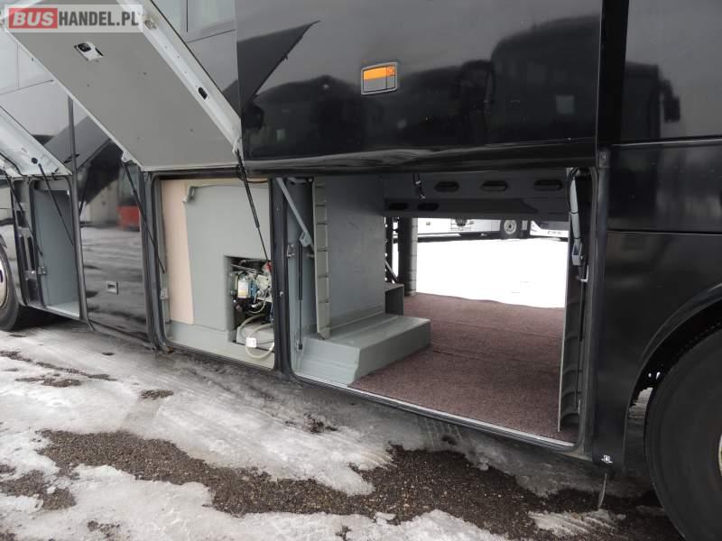 : video, WC, lodówka, oświetlenie indywidualne, nawiewy dyszowe, ABS, ASR, tempomat, retarder, CD, podnóżki, klimatyzacja, radio, regulacja wysokości nadwozia, centralny zamek, podwójne szyby boczne, wspomaganie kierownicy, elektryczne lusterka, fotele odchylane i rozsuwane, DVD, ogrzewanie stacjonarne, ESP