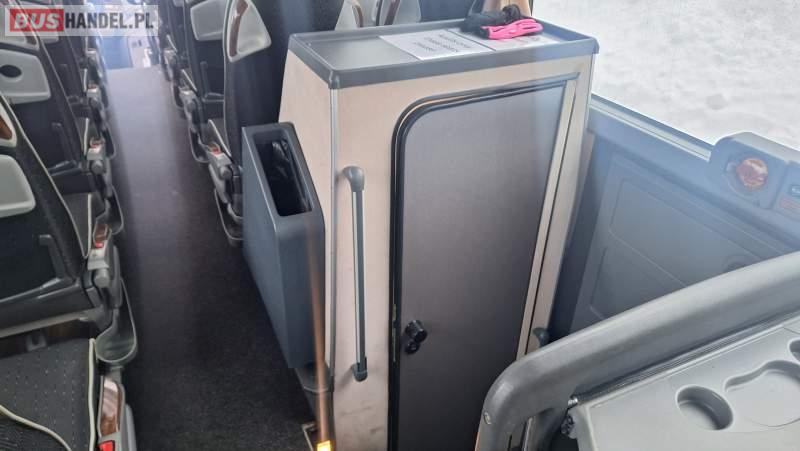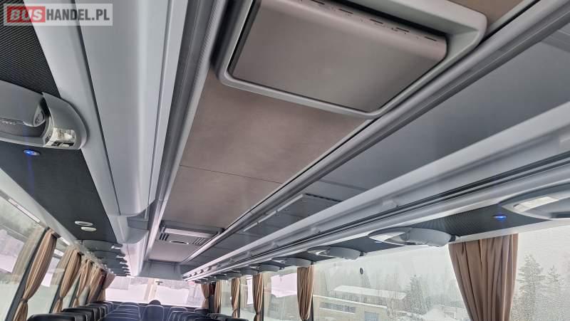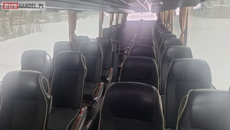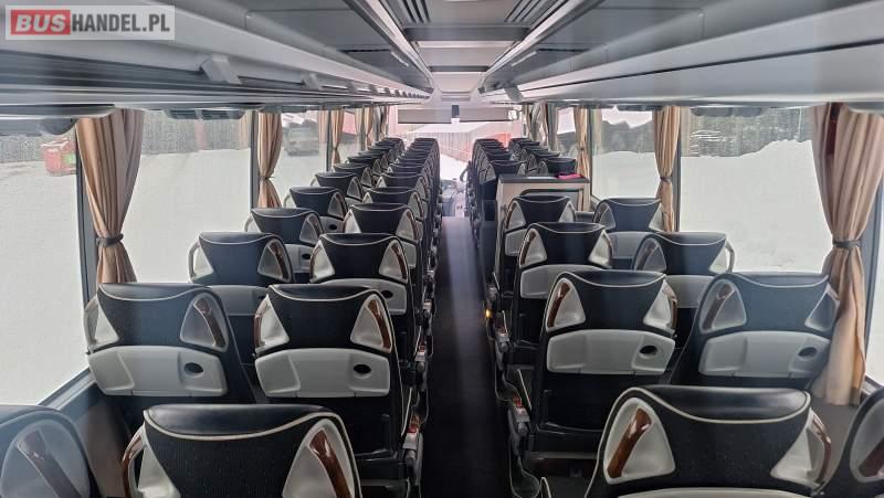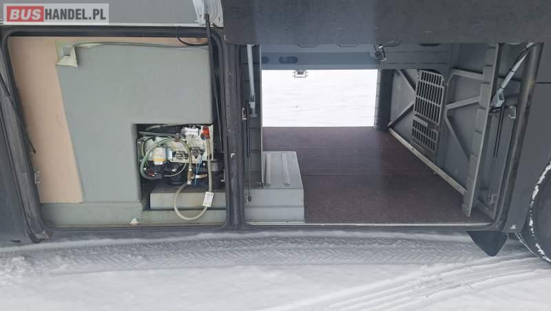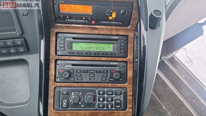 : video, WC, lodówka, oświetlenie indywidualne, nawiewy dyszowe, ABS, ASR, tempomat, retarder, CD, podnóżki, klimatyzacja, radio, regulacja wysokości nadwozia, centralny zamek, podwójne szyby boczne, wspomaganie kierownicy, elektryczne lusterka, fotele odchylane i rozsuwane, DVD, ogrzewanie stacjonarne, ESP