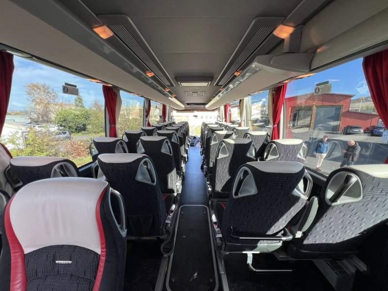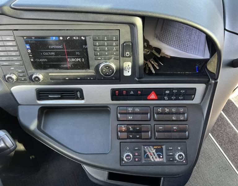 : video, WC, lodówka, fotele odchylane, siateczki, ABS, ASR, telefon, nawigacja, CD, stoliczki, mikrofon, klimatyzacja, radio, centralny zamek, podwójne szyby boczne, elektryczne lusterka, DVD, ogrzewanie stacjonarne, ESP