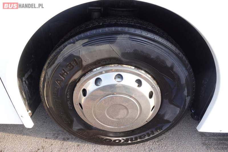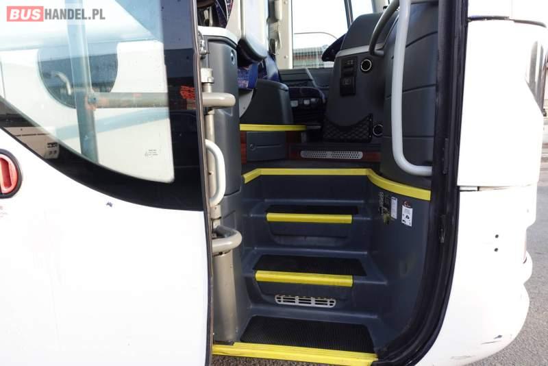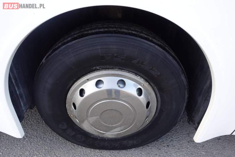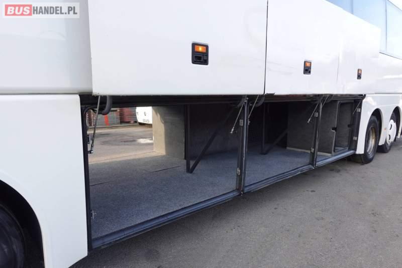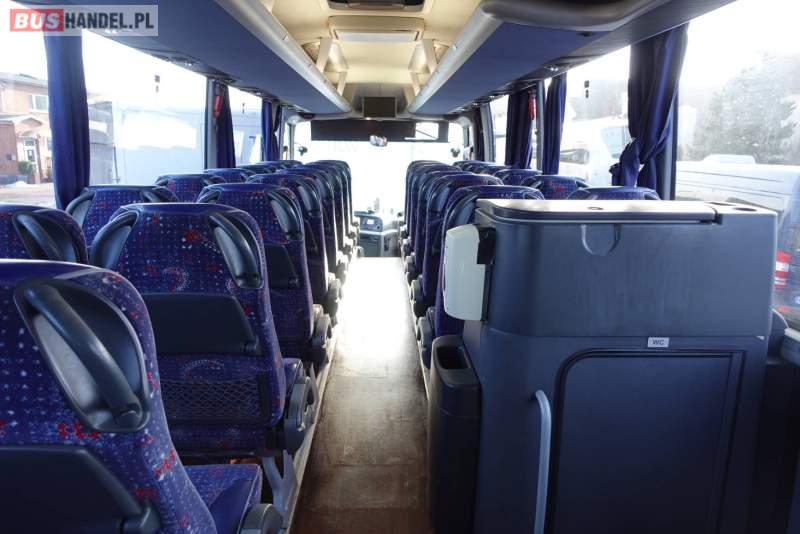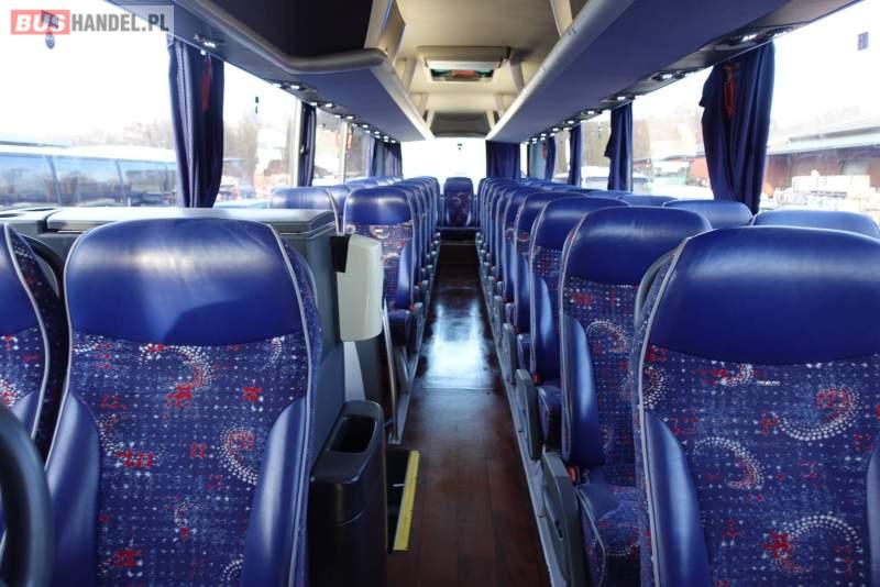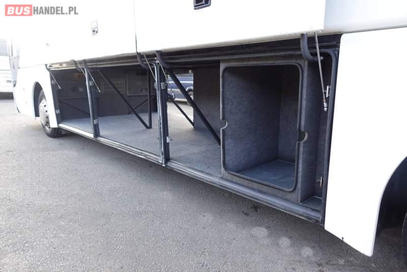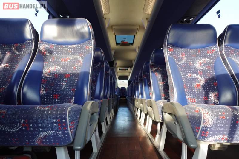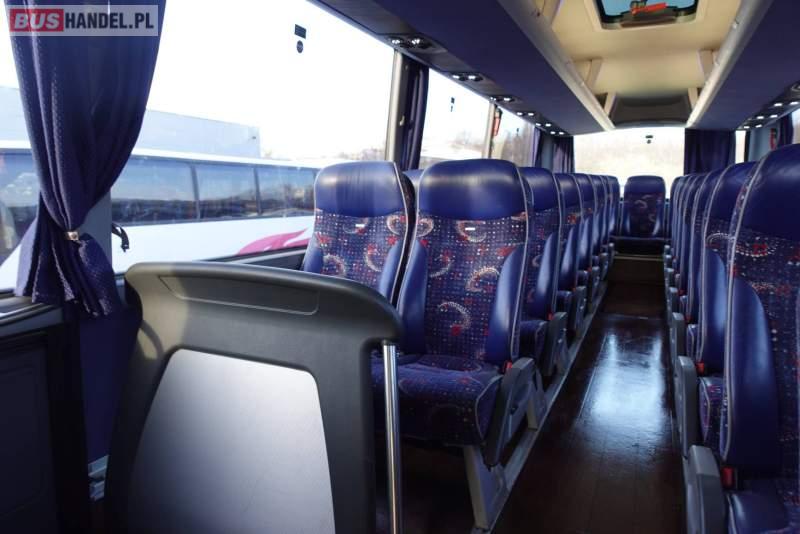 : video, WC, lodówka, kabina sypialna, fotele odchylane, oświetlenie indywidualne, nawiewy dyszowe, siateczki, ABS, ASR, tempomat, retarder, nawigacja, CD, podnóżki, stoliczki, mikrofon, klimatyzacja, radio, regulacja wysokości nadwozia, centralny zamek, podwójne szyby boczne, wspomaganie kierownicy, elektryczne lusterka, DVD, ogrzewanie stacjonarne, ESP