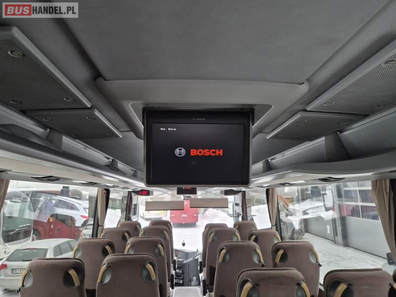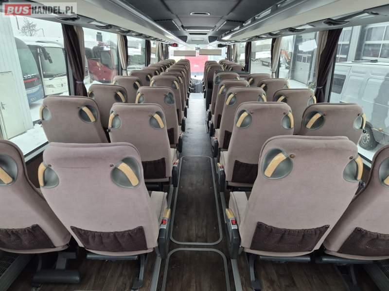 : video, WC, lodówka, fotele odchylane, oświetlenie indywidualne, siateczki, ABS, tempomat, retarder, CD, podnóżki, klimatyzacja, radio, regulacja wysokości nadwozia, centralny zamek, podwójne szyby boczne, wspomaganie kierownicy, elektryczne lusterka, DVD, ogrzewanie stacjonarne