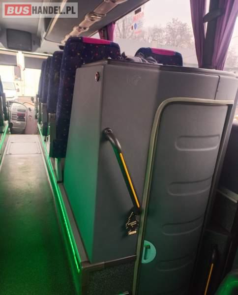 : WC, lodówka, caffebar, kabina sypialna, oświetlenie indywidualne, tempomat, retarder, mikrofon, klimatyzacja, DVD