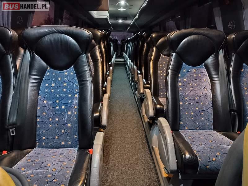 : video, WC, lodówka, caffebar, kabina sypialna, fotele odchylane, oświetlenie indywidualne, siateczki, ABS, ASR, tempomat, retarder, nawigacja, CD, stoliczki, mikrofon, klimatyzacja, radio, sejf, regulacja wysokości nadwozia, centralny zamek, podwójne szyby boczne, elektryczne lusterka, fotele odchylane i rozsuwane, DVD, hak holowniczy, ESP