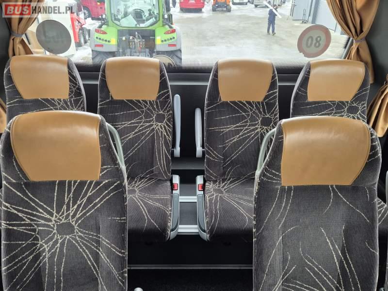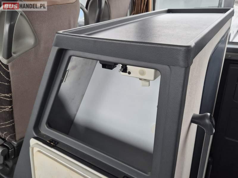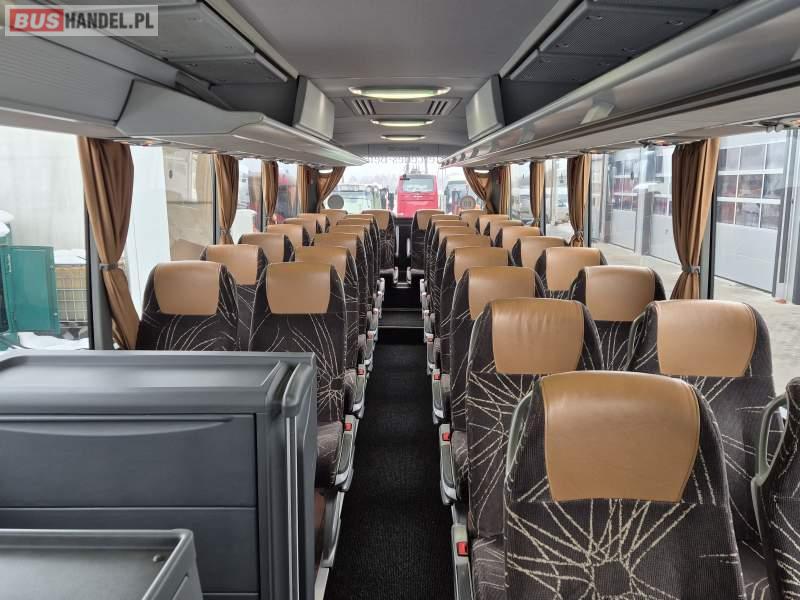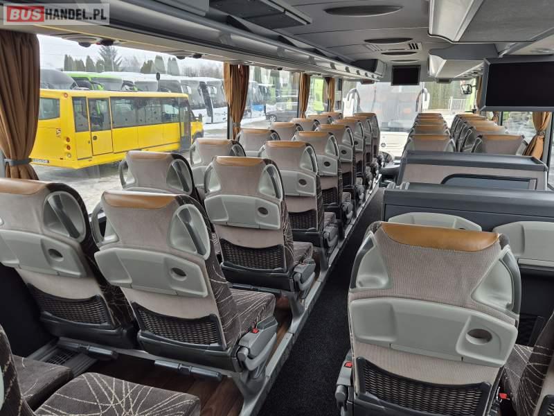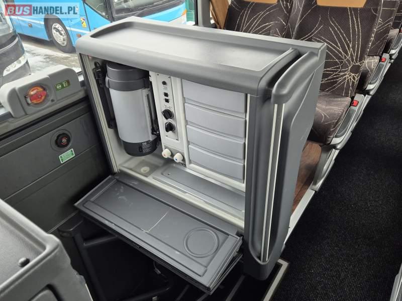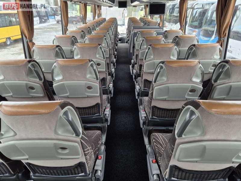 : video, WC, lodówka, caffebar, oświetlenie indywidualne, siateczki, ABS, tempomat, retarder, nawigacja, CD, podnóżki, stoliczki, mikrofon, klimatyzacja, radio, regulacja wysokości nadwozia, centralny zamek, podwójne szyby boczne, wspomaganie kierownicy, elektryczne lusterka, fotele odchylane i rozsuwane, DVD, ogrzewanie stacjonarne