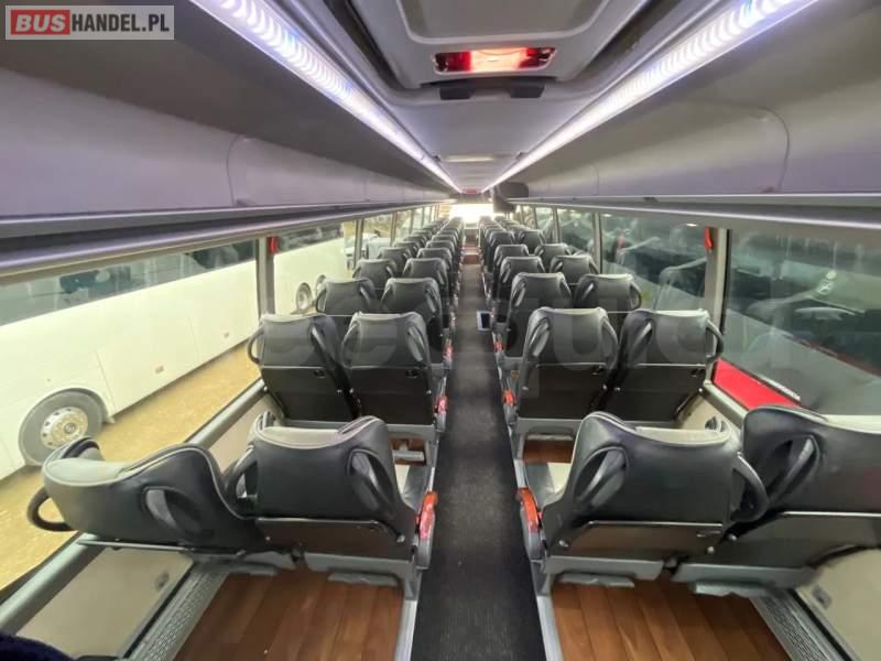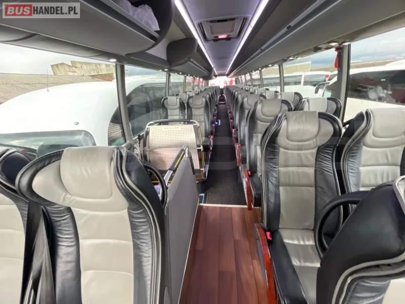 : WC, lodówka, fotele odchylane, ABS, ASR, retarder, CD, podnóżki, stoliczki, mikrofon, klimatyzacja, radio, DVD, ogrzewanie stacjonarne