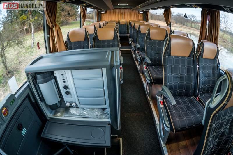 : video, WC, caffebar, fotele odchylane, oświetlenie indywidualne, siateczki, ABS, ASR, tempomat, retarder, telefon, CD, podnóżki, stoliczki, mikrofon, klimatyzacja, radio, wyświetlacz matrix, sejf, regulacja wysokości nadwozia, centralny zamek, podwójne szyby boczne, wspomaganie kierownicy, elektryczne lusterka, aluminiowe felgi, fotele odchylane i rozsuwane, DVD, ogrzewanie stacjonarne, hak holowniczy, ESP