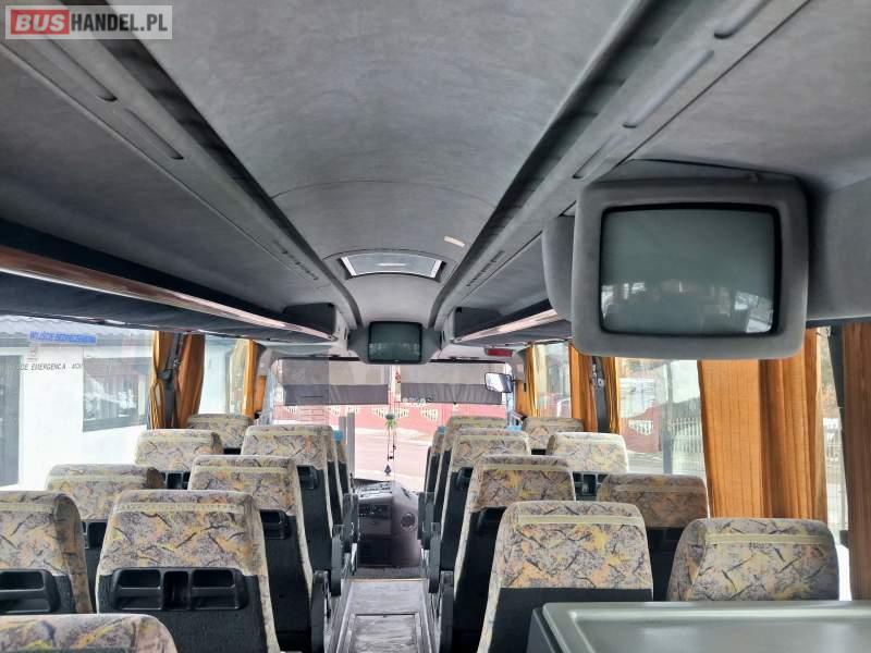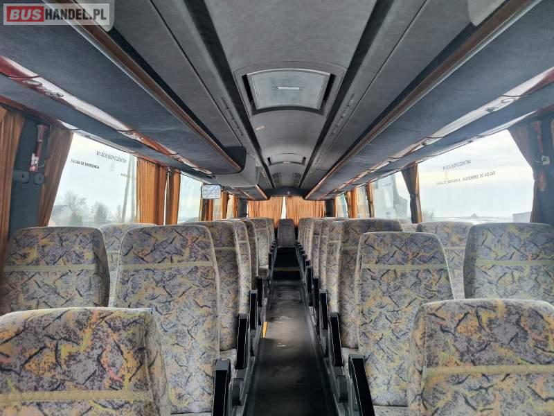 : video, WC, lodówka, caffebar, fotele odchylane, oświetlenie indywidualne, nawiewy dyszowe, ABS, ASR, retarder, CD, mikrofon, klimatyzacja, radio, regulacja wysokości nadwozia, podwójne szyby boczne, wspomaganie kierownicy, elektryczne lusterka, aluminiowe felgi, DVD, ogrzewanie stacjonarne, ESP