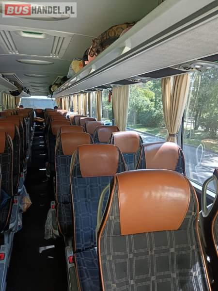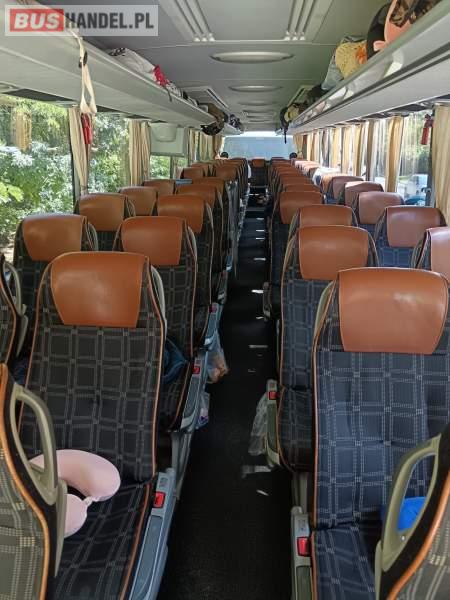 : video, WC, lodówka, caffebar, kabina sypialna, fotele odchylane, oświetlenie indywidualne, nawiewy dyszowe, siateczki, ABS, ASR, tempomat, retarder, telefon, nawigacja, CD, stoliczki, mikrofon, klimatyzacja, radio, kuchenka mikrofalowa, wyświetlacz matrix, sejf, regulacja wysokości nadwozia, centralny zamek, podwójne szyby boczne, wspomaganie kierownicy, elektryczne lusterka, fotele odchylane i rozsuwane, DVD, ogrzewanie stacjonarne, hak holowniczy, ESP