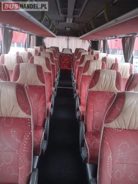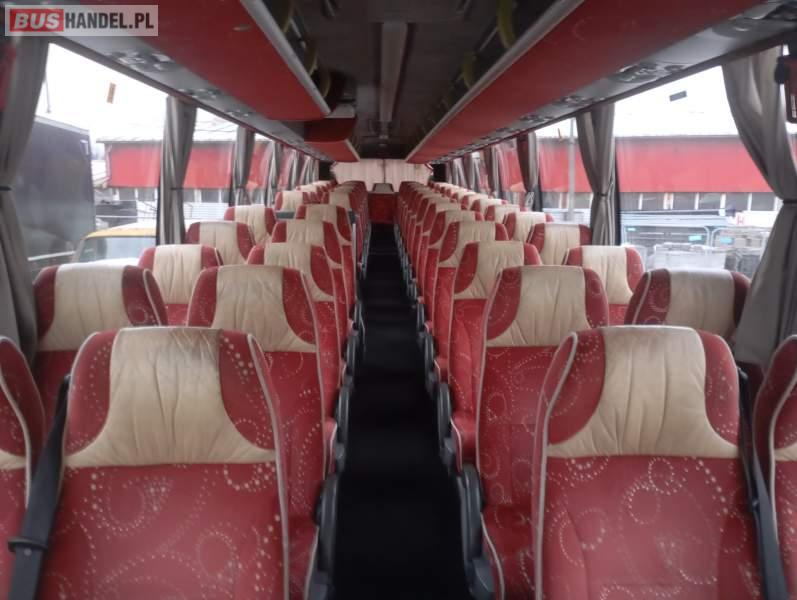 : video, WC, lodówka, caffebar, kabina sypialna, fotele odchylane, nawiewy dyszowe, siateczki, ABS, ASR, tempomat, retarder, nawigacja, CD, podnóżki, stoliczki, mikrofon, klimatyzacja, radio, sejf, regulacja wysokości nadwozia, podwójne szyby boczne, wspomaganie kierownicy, elektryczne lusterka, aluminiowe felgi, fotele odchylane i rozsuwane, DVD, ESP