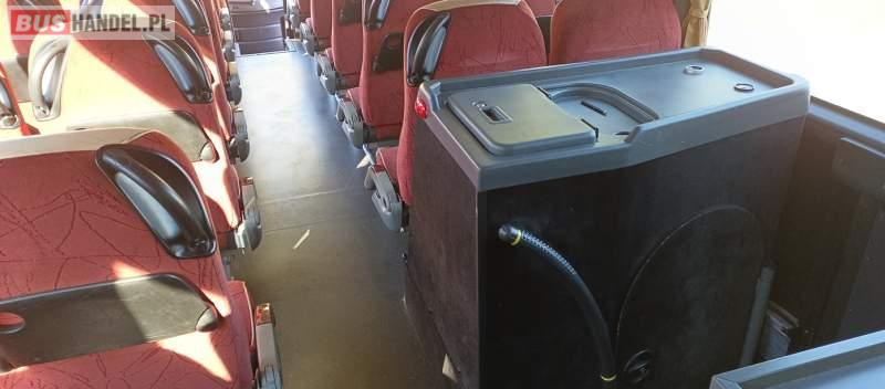 : video, WC, lodówka, kabina sypialna, fotele odchylane, oświetlenie indywidualne, ABS, ASR, tempomat, retarder, CD, podnóżki, stoliczki, mikrofon, klimatyzacja, radio, sejf, centralny zamek, podwójne szyby boczne, wspomaganie kierownicy, elektryczne lusterka, DVD, ogrzewanie stacjonarne, hak holowniczy, ESP