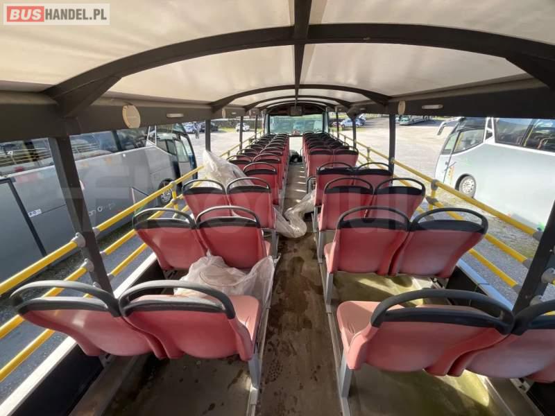 Ze względu na ochronę prywatności sprzedającego sitodruk został zasłonięty, informujemy, że pojazd zostanie dostarczony z logo. Autobus piętrowy (open-top) do wycieczek miejskich. Ze względu na otwarty dach wymaga renowacji wnętrza. Silnik jest sprawny, co widać na załączonym filmie. Opis Data pierwszej rejestracji: 10. 1994 Przebieg: 1 452 229 km Norma emisji spalin: Euro 1 Typ: Autobus Klasa: Międzymiastowe Wersja: O 404 RH - Euro 1 - 280 kW -12 mt Lokalizacja: Cantabria, Hiszpania Stan pojazdu: Gotowy do jazdy Typ użytkowania: Linia Numer identyfikacyjny pojazdu: WDB61441511074220 Podłoga: Normalna podłoga Długość: 12, 00 m Szerokość: 2, 50 m Wysokość: 3, 67 m Data ważności przeglądu: 09. 2015 Narodowość dokumentu: Hiszpania Drzwi: 1+1 Całkowita pojemność pasażerska: 57 Fotele: 55 Miejsca, w tym fotel kierowcy, z certyfikatu rejestracyjnego S1: 47 Miejsca stojące: 0 Miejsce stojące – pole S2 w dowodzie rejestracyjnym: 0 Miejsca dla osób towarzyszących: 1 Składane siedzenia: 0 Miejsca dla wózków inwalidzkich: 0 Pochylnia dla wózków: Brak Przelotowy przedział bagażowy Pojazd sprzedany w trybie "Kup Teraz" na platformie Fleequid Aby uzyskać więcej informacji, wypełnij formularz kontaktowy lub napisz do nas na WhatsApp pod numerem: +48 698 979 994 Sprzedający: