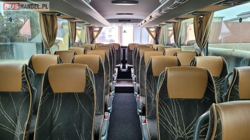 : video, WC, lodówka, caffebar, kabina sypialna, fotele odchylane, oświetlenie indywidualne, nawiewy dyszowe, siateczki, ABS, ASR, tempomat, retarder, nawigacja, CD, podnóżki, stoliczki, mikrofon, klimatyzacja, radio, sejf, regulacja wysokości nadwozia, centralny zamek, podwójne szyby boczne, wspomaganie kierownicy, elektryczne lusterka, fotele odchylane i rozsuwane, DVD, hak holowniczy, ESP