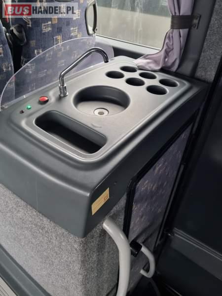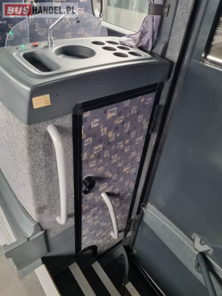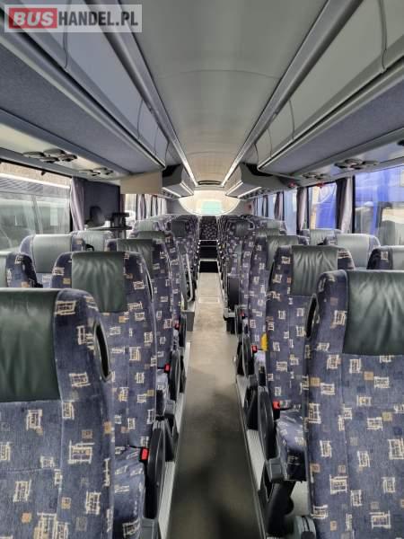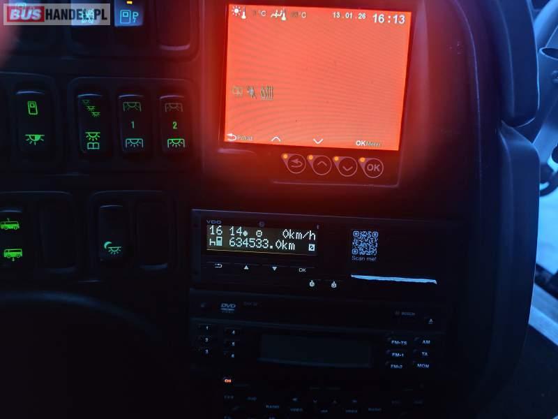 : video, WC, lodówka, fotele odchylane, oświetlenie indywidualne, nawiewy dyszowe, siateczki, ABS, ASR, tempomat, retarder, CD, podnóżki, stoliczki, mikrofon, klimatyzacja, radio, rampa dla inwalidów, regulacja wysokości nadwozia, centralny zamek, podwójne szyby boczne, wspomaganie kierownicy, elektryczne lusterka, DVD, ogrzewanie stacjonarne, ESP
