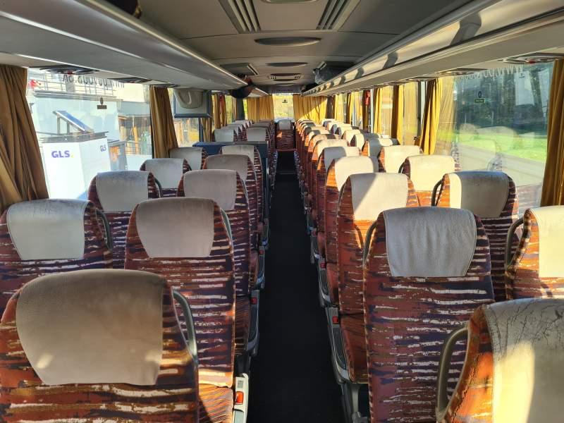 : WC, lodówka, kabina sypialna, oświetlenie indywidualne, ABS, ASR, tempomat, retarder, podnóżki, mikrofon, klimatyzacja, radio, regulacja wysokości nadwozia, podwójne szyby boczne, elektryczne lusterka, fotele odchylane i rozsuwane