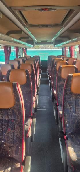 : lodówka, fotele odchylane, siateczki, ABS, ASR, tempomat, retarder, CD, podnóżki, stoliczki, mikrofon, klimatyzacja, radio, podwójne szyby boczne, wspomaganie kierownicy, elektryczne lusterka, fotele odchylane i rozsuwane, DVD, ogrzewanie stacjonarne