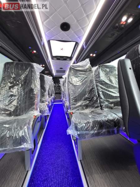 Numer pojazdu w ofercie: 8, 18, 41, 43 NOWY! Marka i model: Mercedes-Benz Sprinter 517 CDI Rok produkcji: 2024 Skrzynia biegów: Automatyczna Pojemność silnika: 1950 cm3 Moc: 170 KM Stan licznika :9 31km Autobus w stanie IDEALNYM Nie eksploatowany w kraju. CENA: 337 000 zł + VAT Wyposażenie: - 24 miejsca siedzące + 3 stojące - fotel pilota - grzejniki - mikrofon - klimatyzacja dachowa - klimatyzacja przednia - fotele rozkładane z podłokietnikami i pasami bezpieczeństwa - podświetlane półki bagażowe z indywidualnym oświetleniem i nawiewami - tempomat - szyberdach - tachograf - radio - elektryczne szyby - pogłębiany, duży bagażnik - kierownica wielofunkcyjna - hak Nasza firma wykonuje również zabudowy na autobusy od 16 do 24 miejsc + do 6 miejsc stojących na bazie fabrycznie nowego jak i używanego Mercedesa Sprintera. W zależności od potrzeb klienta możemy również montować w autobusach różne wyposażenie, od stolików, kanap do spania, po lodówki i inne dodatkowe wyposażenie. Sprzedający: