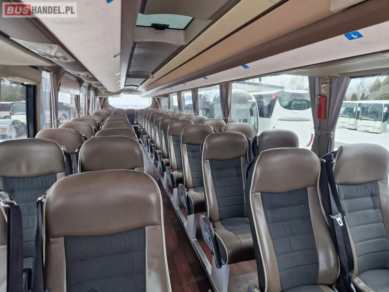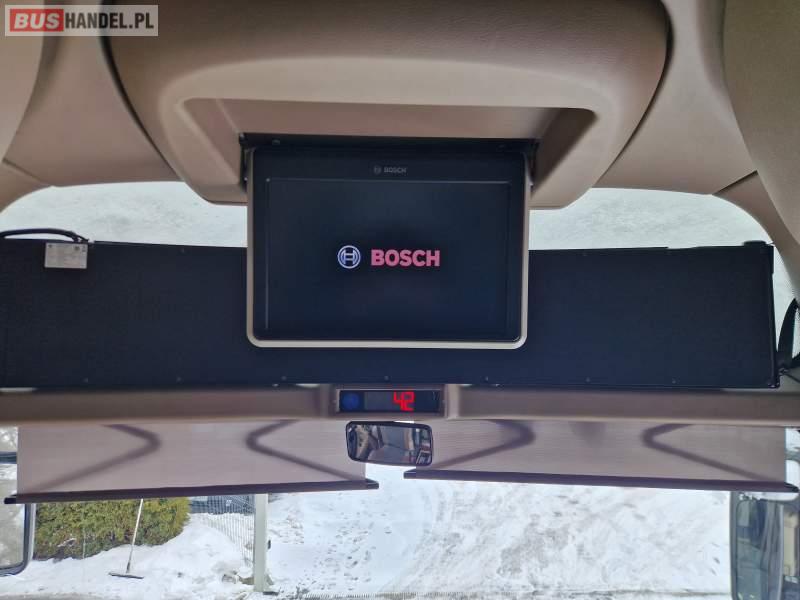 : video, WC, lodówka, caffebar, oświetlenie indywidualne, siateczki, ABS, ASR, tempomat, retarder, telefon, CD, podnóżki, stoliczki, mikrofon, klimatyzacja, radio, rampa dla inwalidów, regulacja wysokości nadwozia, centralny zamek, podwójne szyby boczne, wspomaganie kierownicy, elektryczne lusterka, fotele odchylane i rozsuwane, DVD, ogrzewanie stacjonarne, ESP