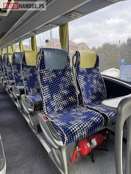 : lodówka, fotele odchylane, oświetlenie indywidualne, siateczki, ABS, ASR, tempomat, retarder, CD, podnóżki, mikrofon, klimatyzacja, radio, regulacja wysokości nadwozia, centralny zamek, podwójne szyby boczne, wspomaganie kierownicy, elektryczne lusterka, DVD, ogrzewanie stacjonarne, ESP