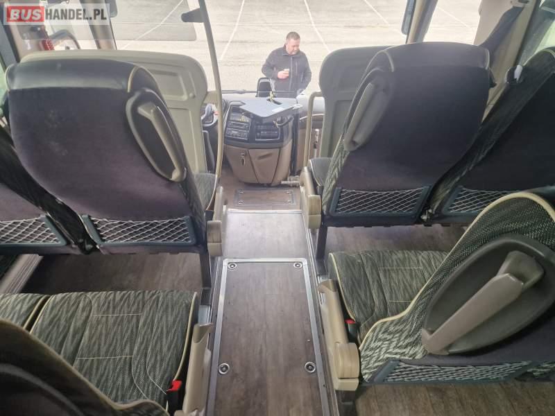 : video, lodówka, fotele odchylane, oświetlenie indywidualne, ABS, ASR, tempomat, retarder, CD, klimatyzacja, radio, rampa dla inwalidów, regulacja wysokości nadwozia, centralny zamek, podwójne szyby boczne, wspomaganie kierownicy, elektryczne lusterka, DVD, ogrzewanie stacjonarne, ESP